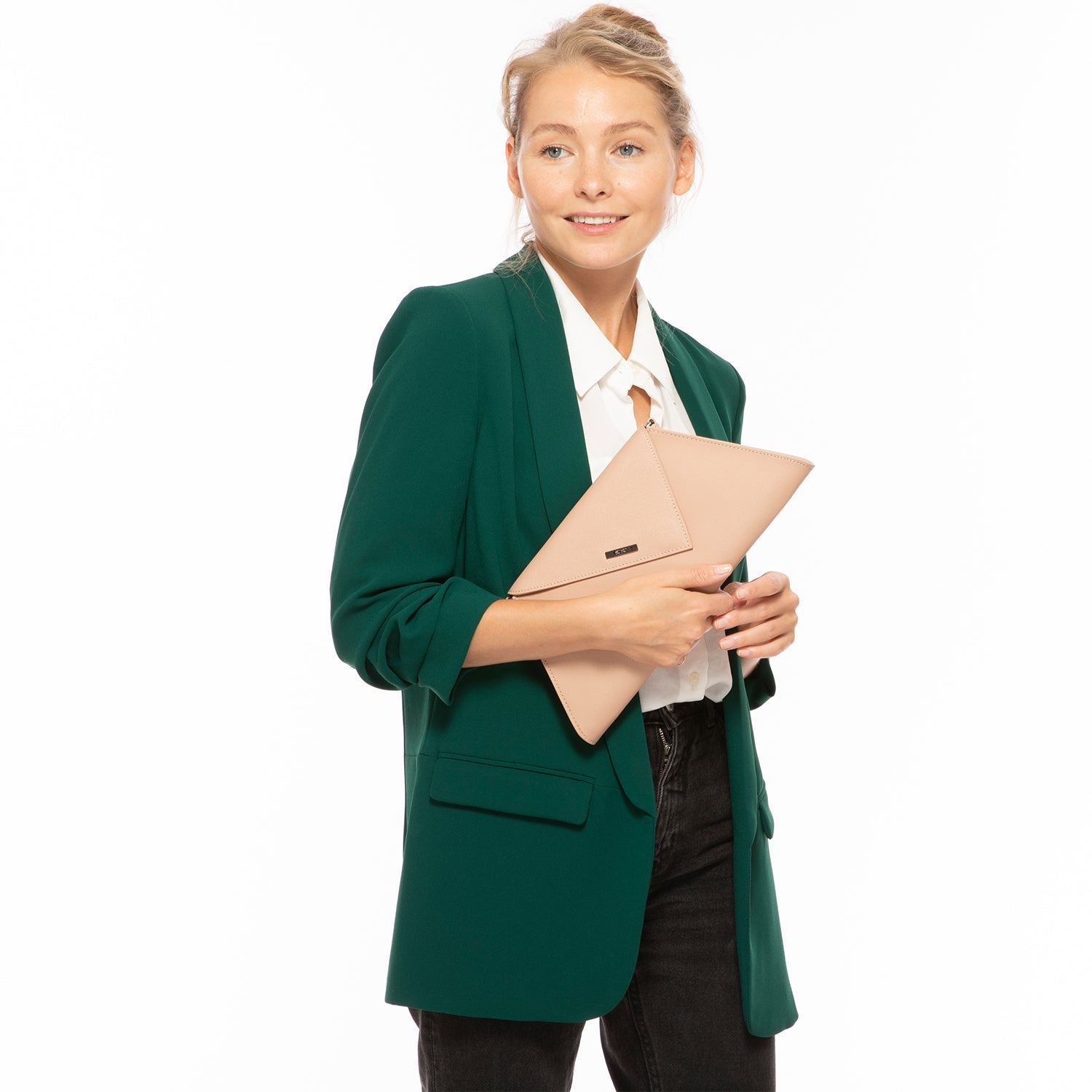 Angelica Nude Leather Clutch Purse