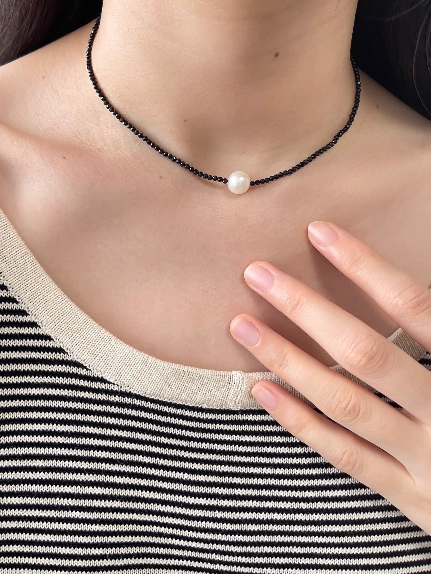 Black Spinel Beaded Pearl Bracelet / Necklace