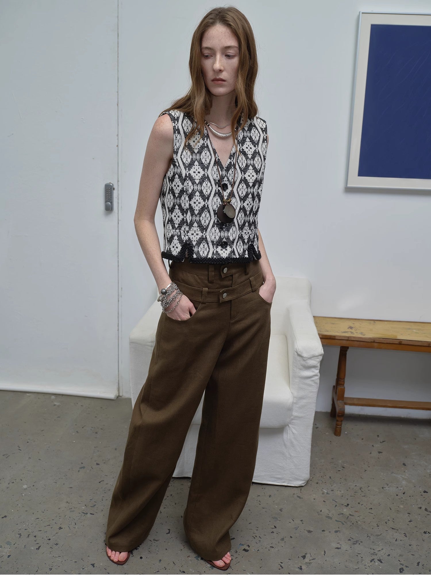 Classical Simple Silhouette Italian Imported Jacquard Ethnic Style V-Neck Vest