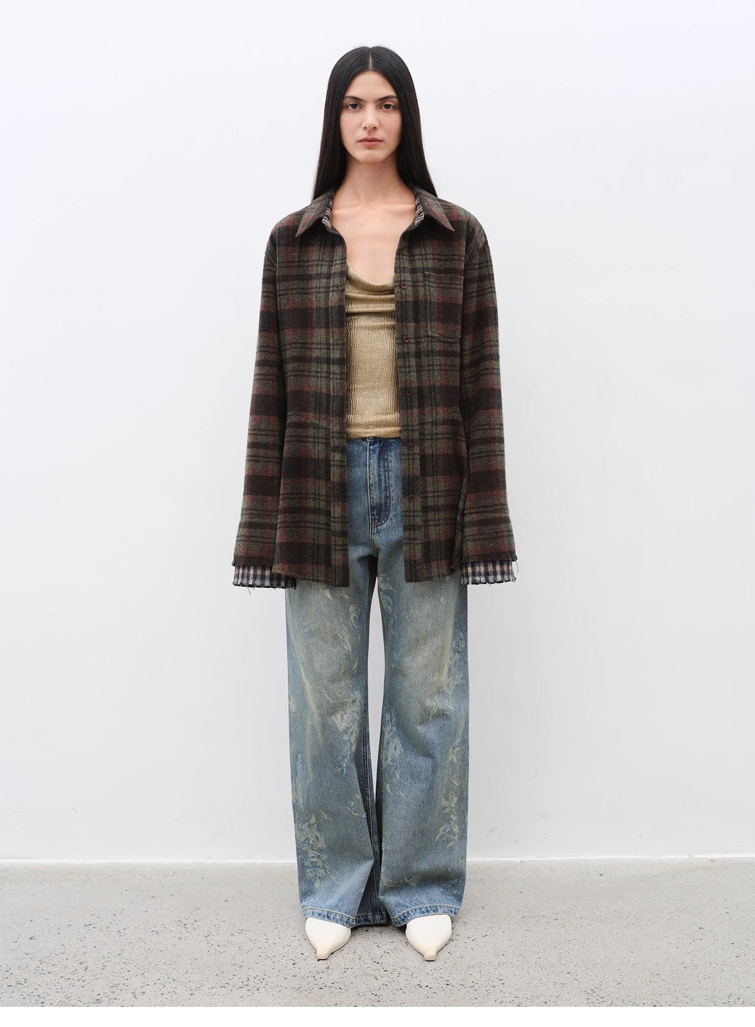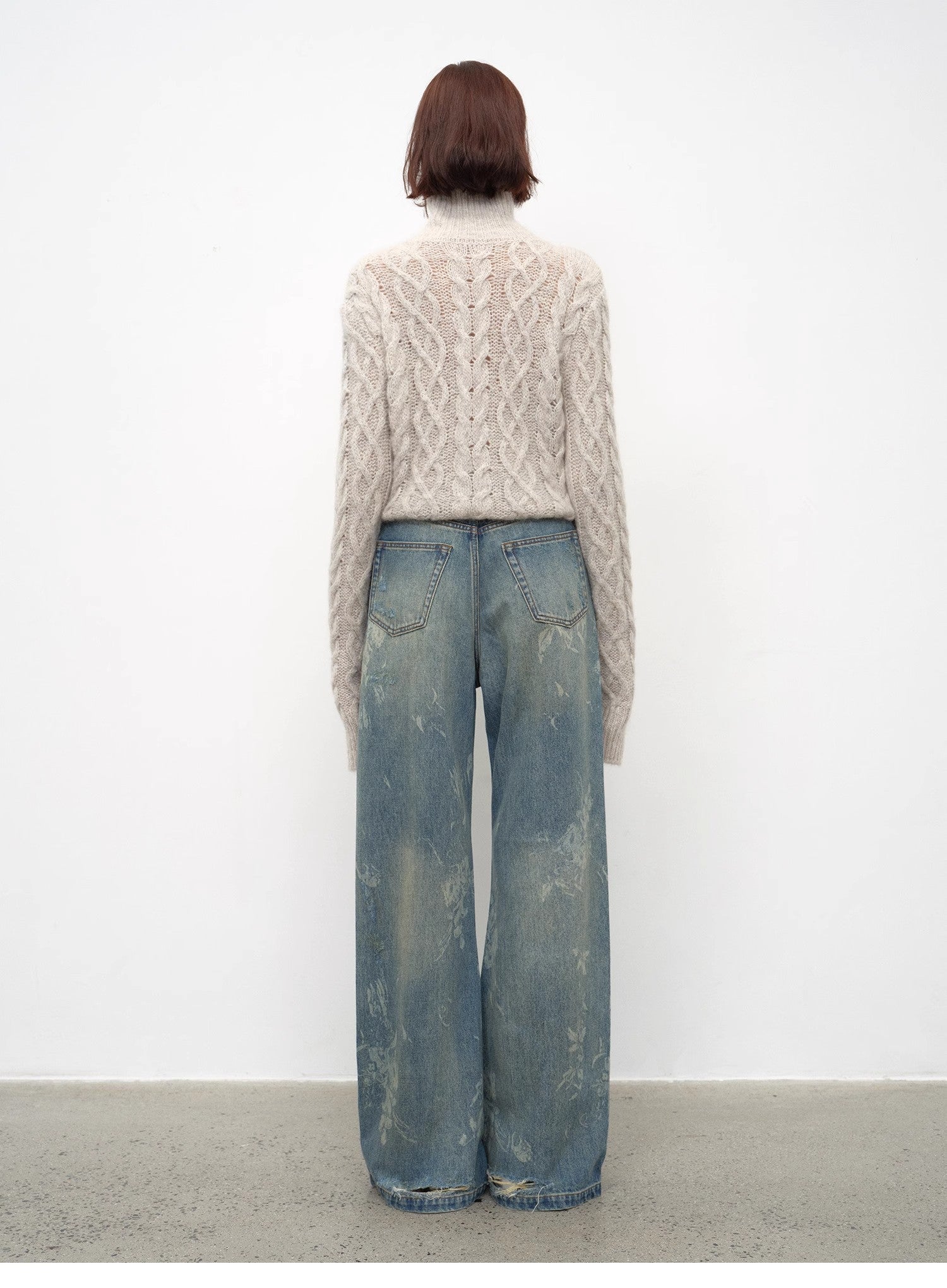 "Denim Shadow"retro Washed Printed Layered Casual Slimming Cotton Bootcut Jeans