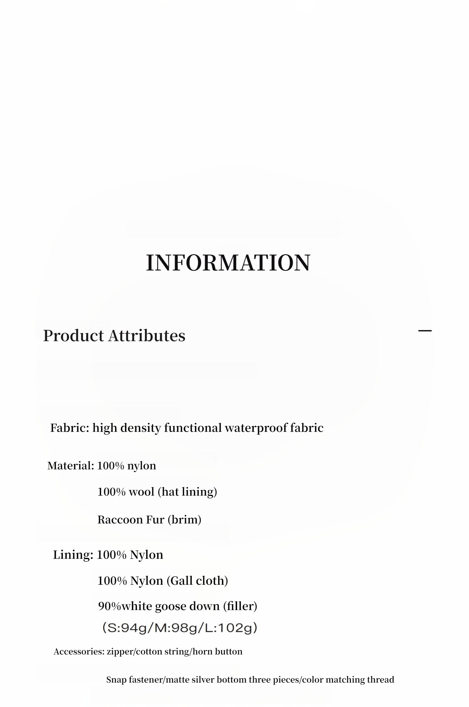 This parka solves the problem of staying warm in extreme cold while maintaining style. The combination of raccoon fur, heavy goose down, and waterproof shell creates comprehensive protection that's both practical and fashionable.