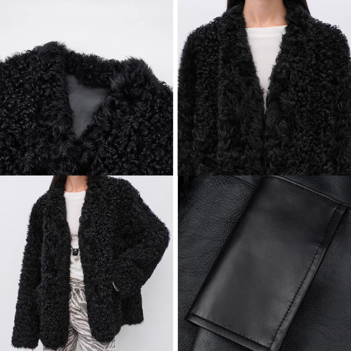 Fireladyfur Women's Black Sheepskin Jacket With Tuscan Fur"My Little Curly"