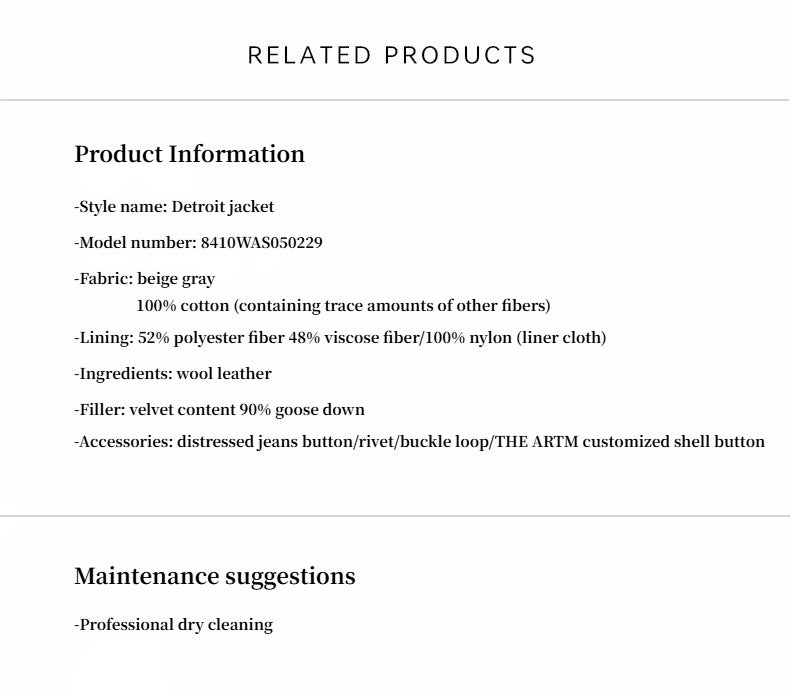 Retro Heavy-Duty Denim: Made from high-quality cotton fibers with three-dimensional, clear twill texture. Comfortable to the touch, moisture-absorbent, and breathable. The garment is processed through environmentally friendly dyeing and color-fixing technology for pure, fashionable, warm color that's not ostentatious.