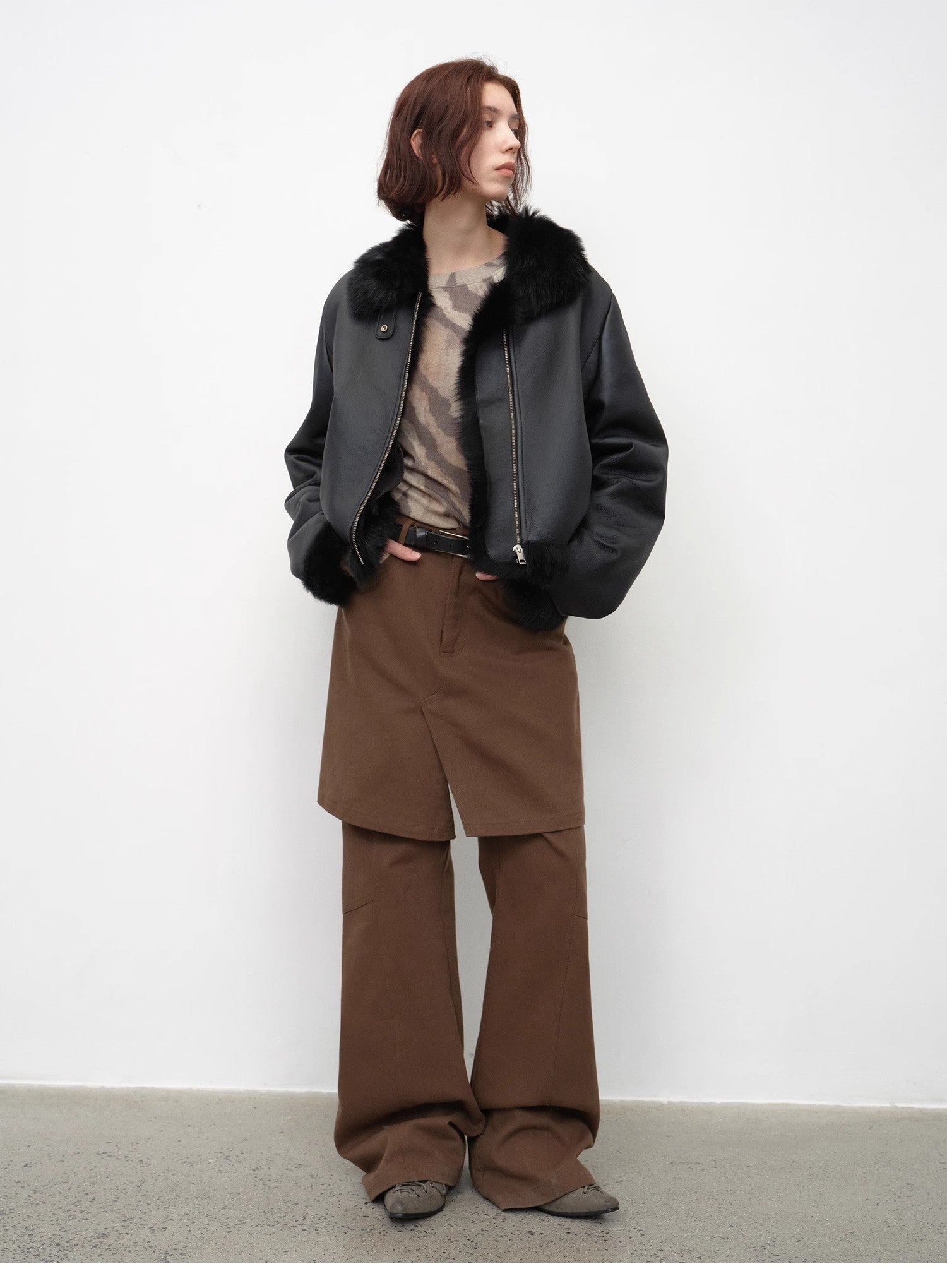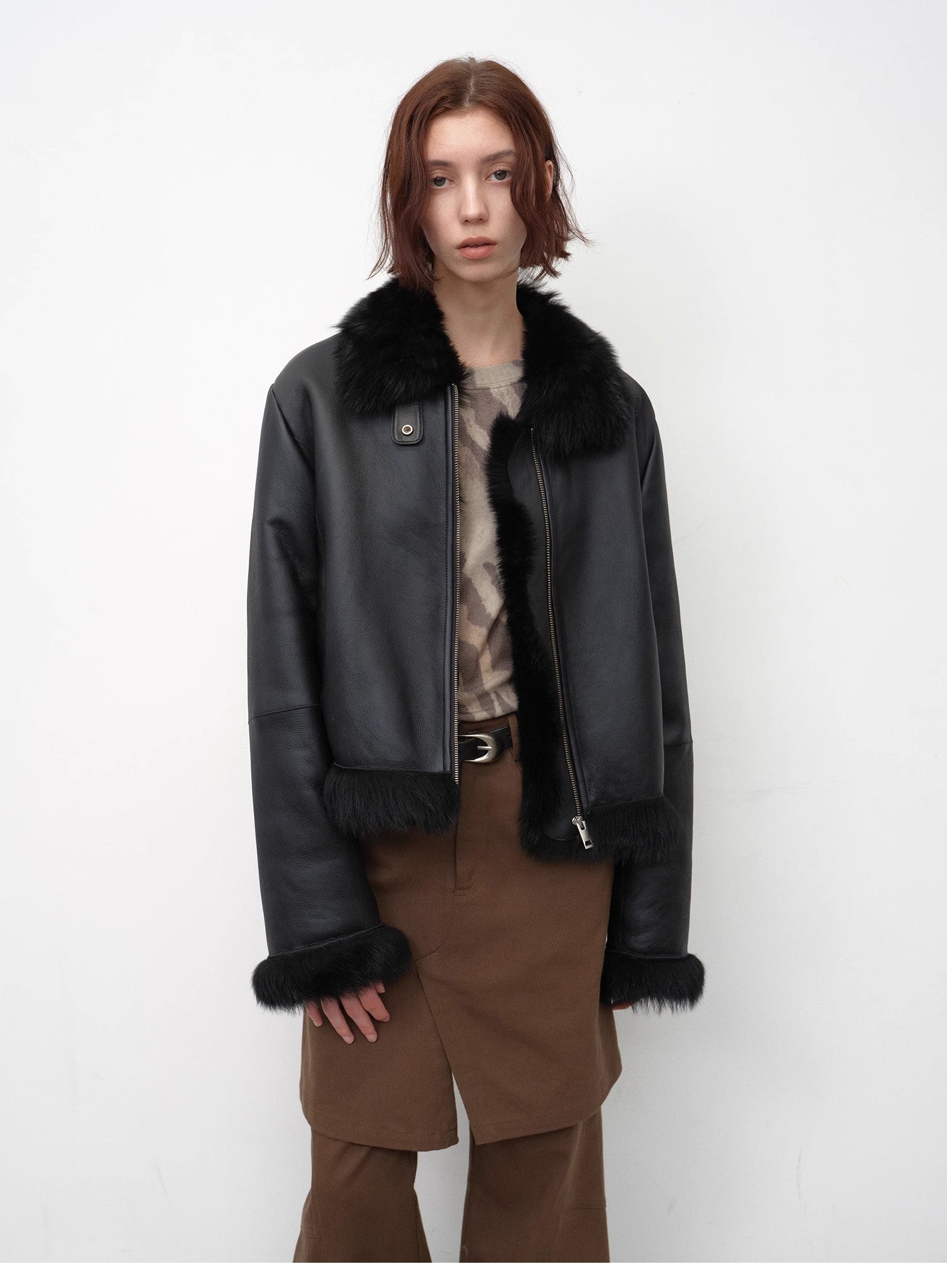 Fireladyfur Women's Shearling Coat - Motorcycle Style Tuscan Wool Short Jacket
