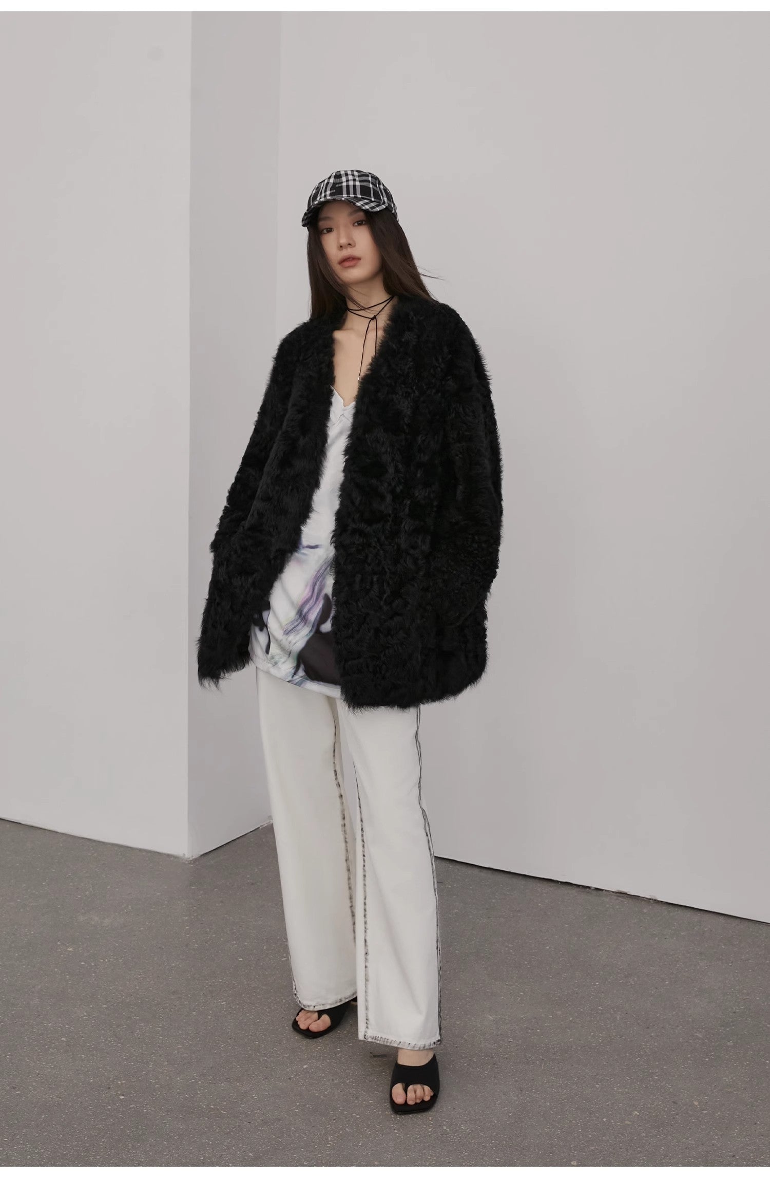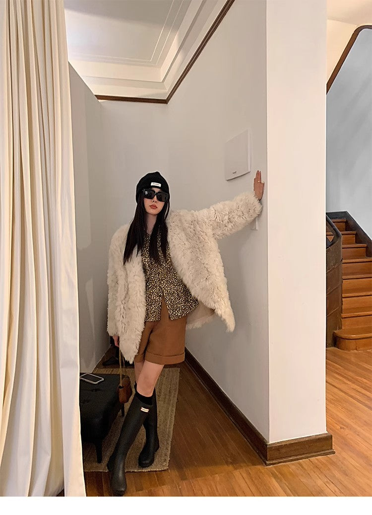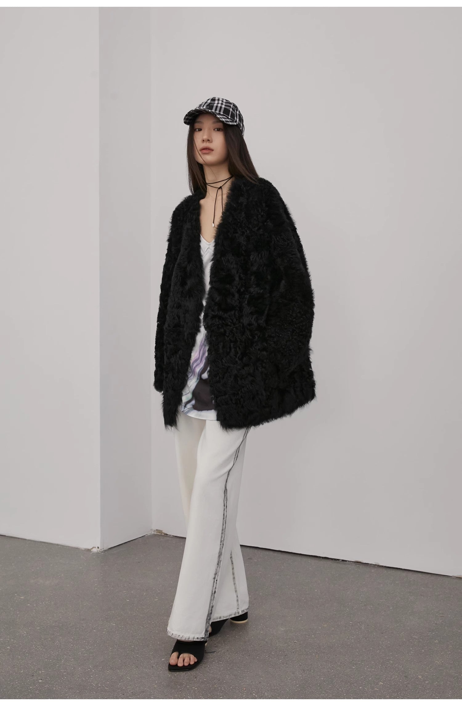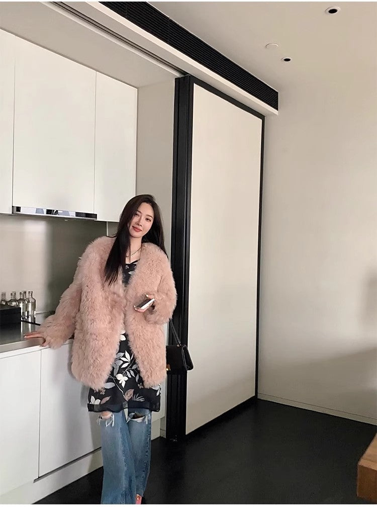 The length of the garment covers the hips, and the proportion of the shape is accurate, keeping warm while covering the meat and skinny, reserving a comfortable degree of clothing, both casual and broad, V-neck off-shoulder cutting Reduced shoulder roundness, three-dimensional and shapely.