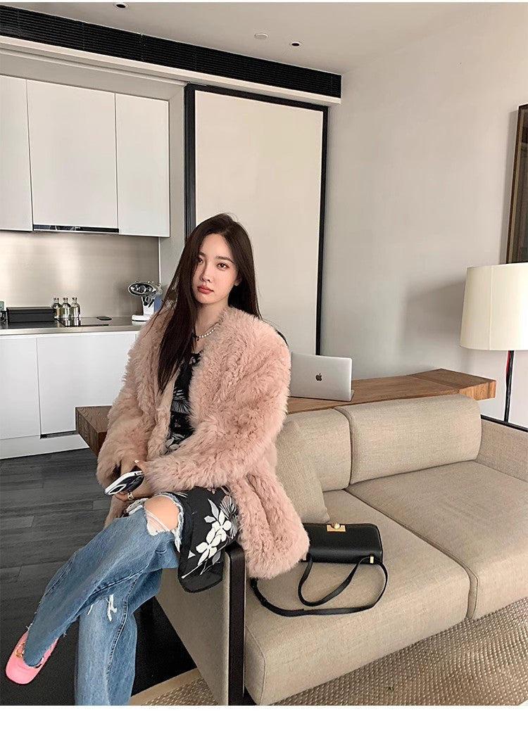 Fireladyfur Women's Tuscan Sheepskin Winter Coat“Peach Oolong”