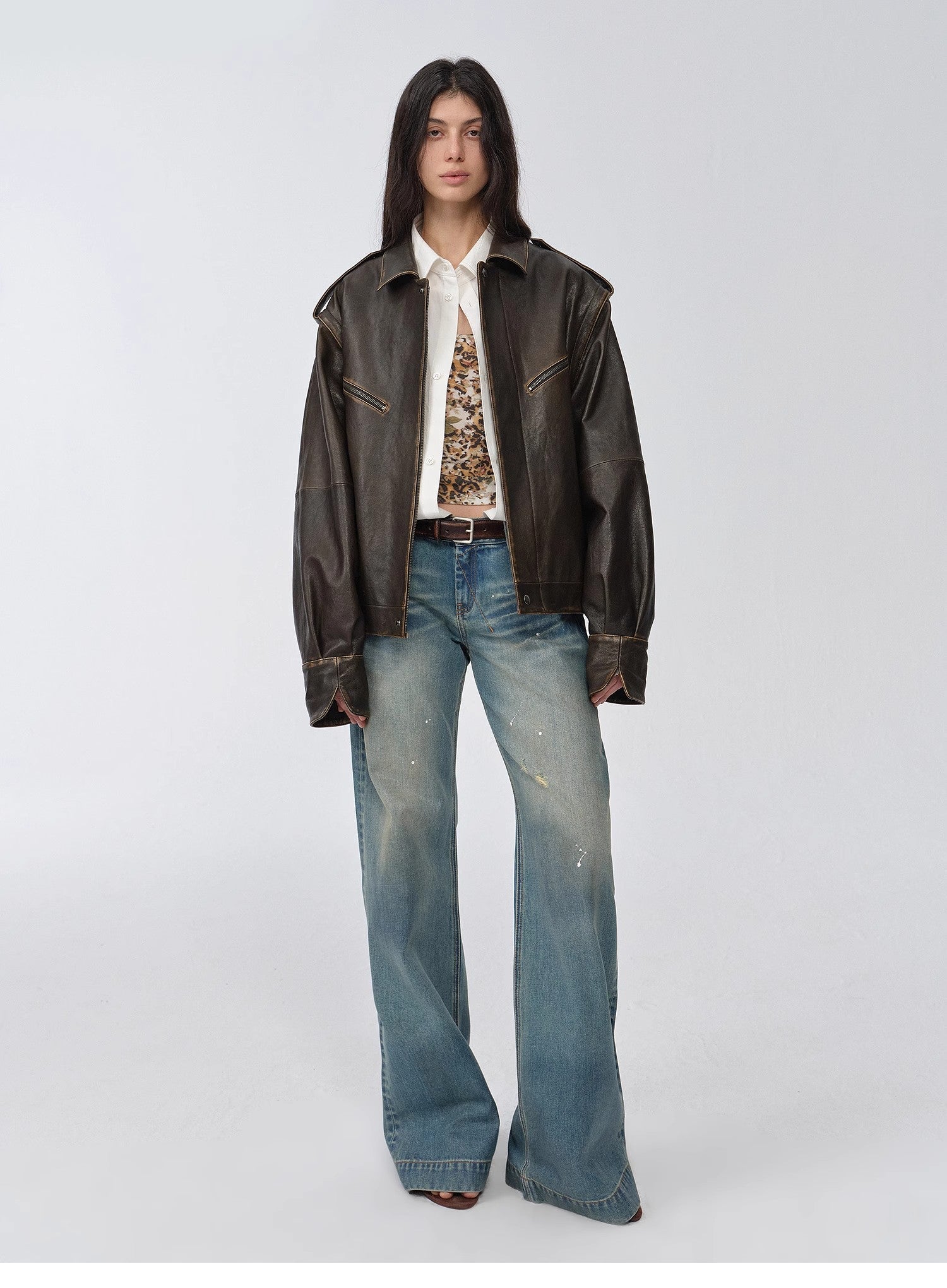 Two-Way Leather Jacket with Removable Sleeves - Barn Feelings