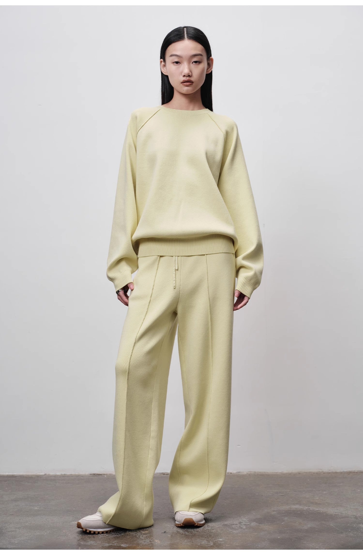 French Lazy Style Wool Blend Design Loose Slimming Knit Casual Pants for Women
