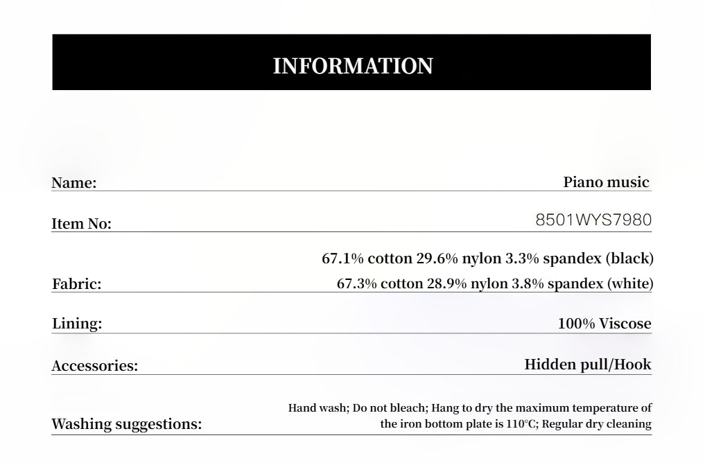 Crafted from a high-quality cotton-polyamide-spandex blend, this fabric combines cotton’s breathability, nylon’s strength, and spandex’s flexibility. The result is a durable yet comfortable material that maintains its shape and structure. A subtly textured surface adds depth and polish, giving the garment a soft yet sculpted look with excellent drape and wrinkle resistance.