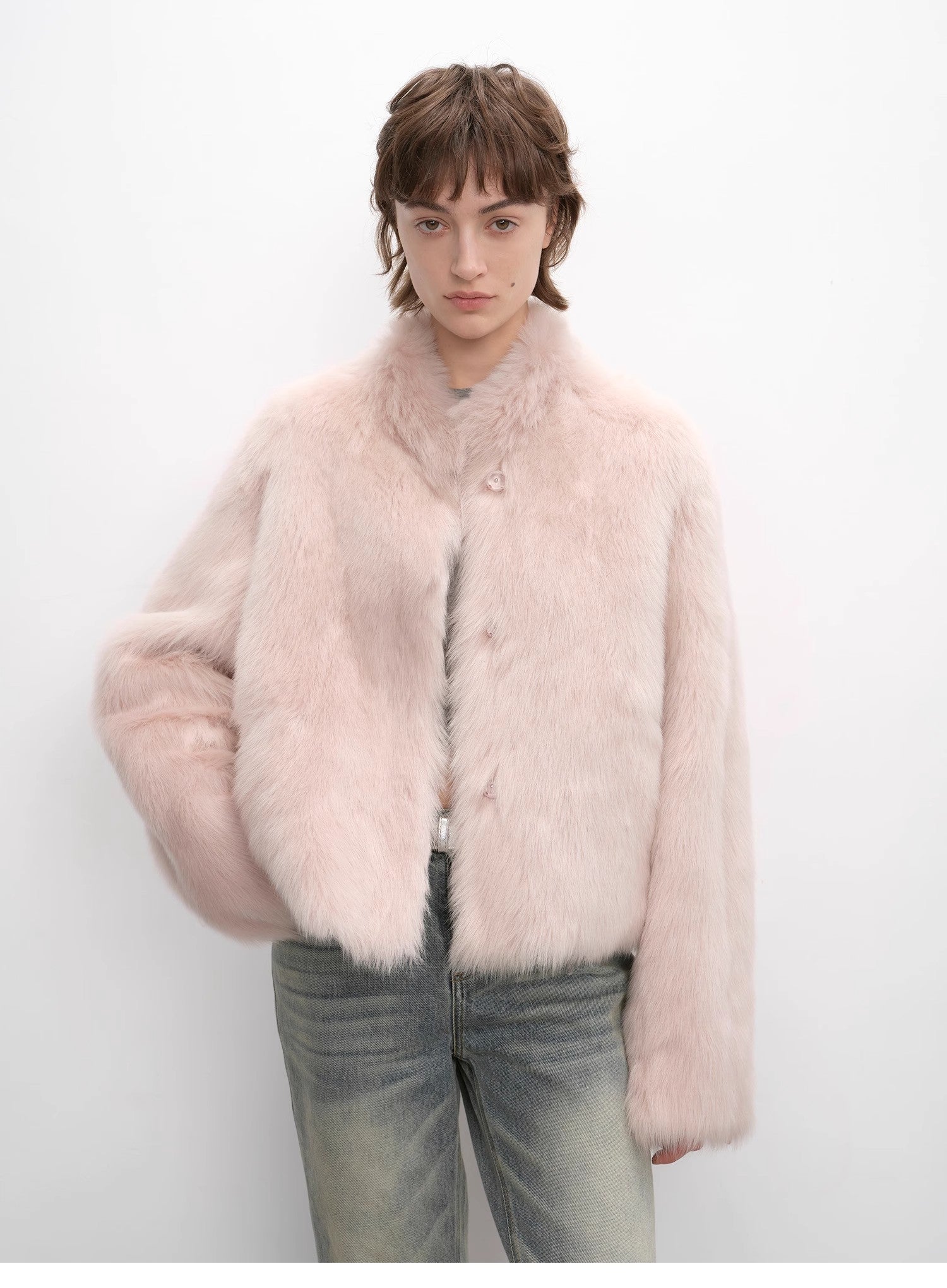 "Healing Eros" Casual Stand-Up Collar Short Tuscan Sheepskin Fur Coat Winter