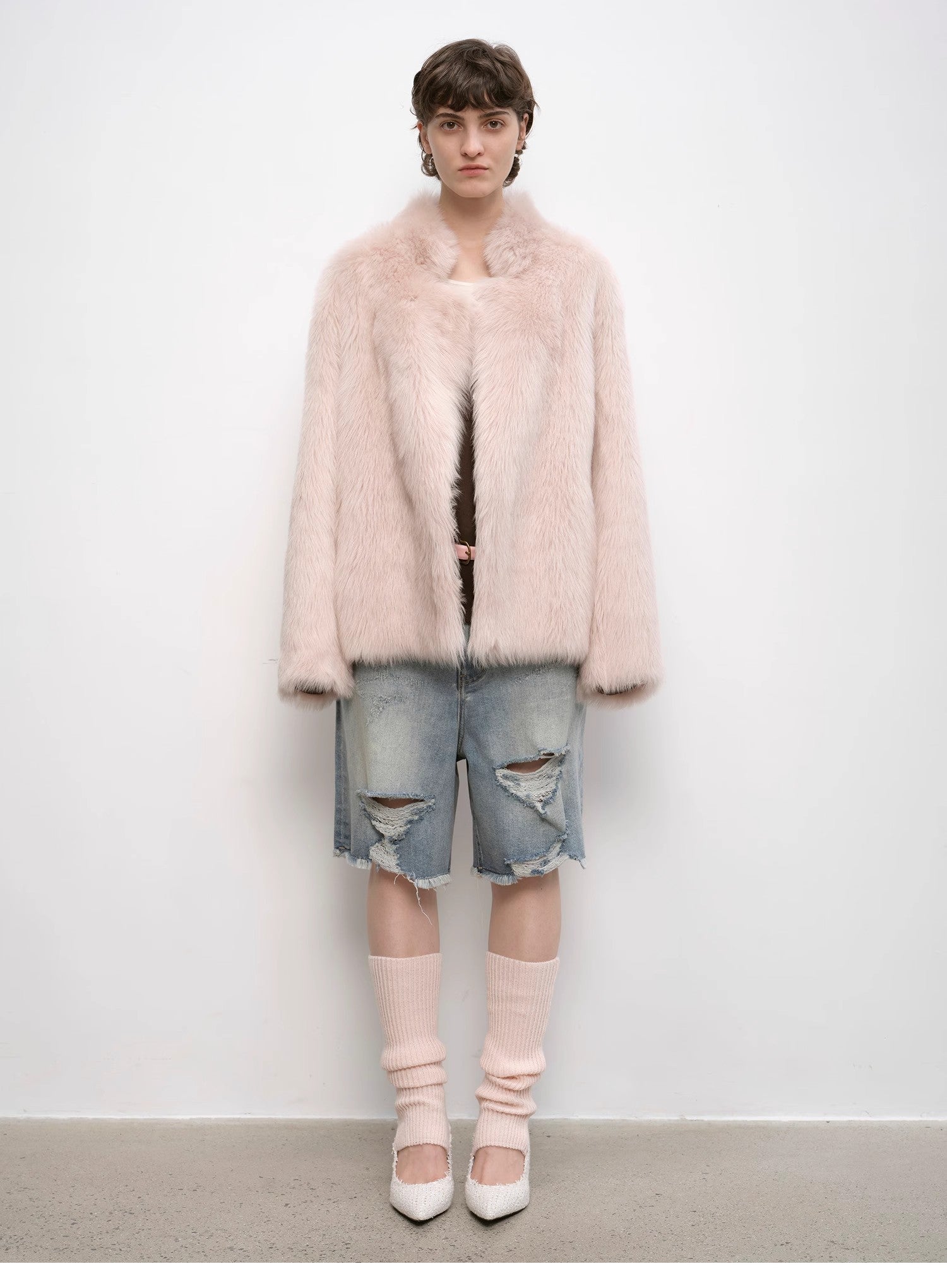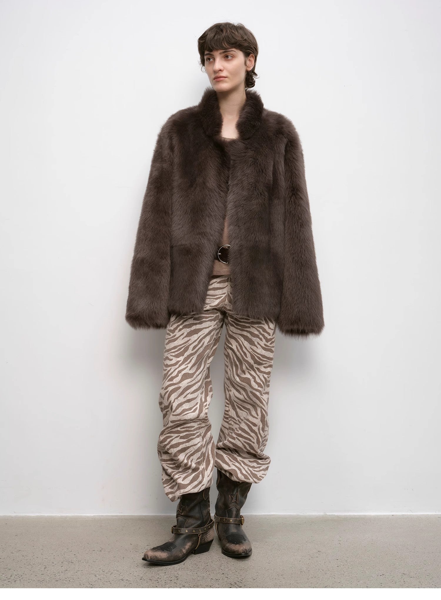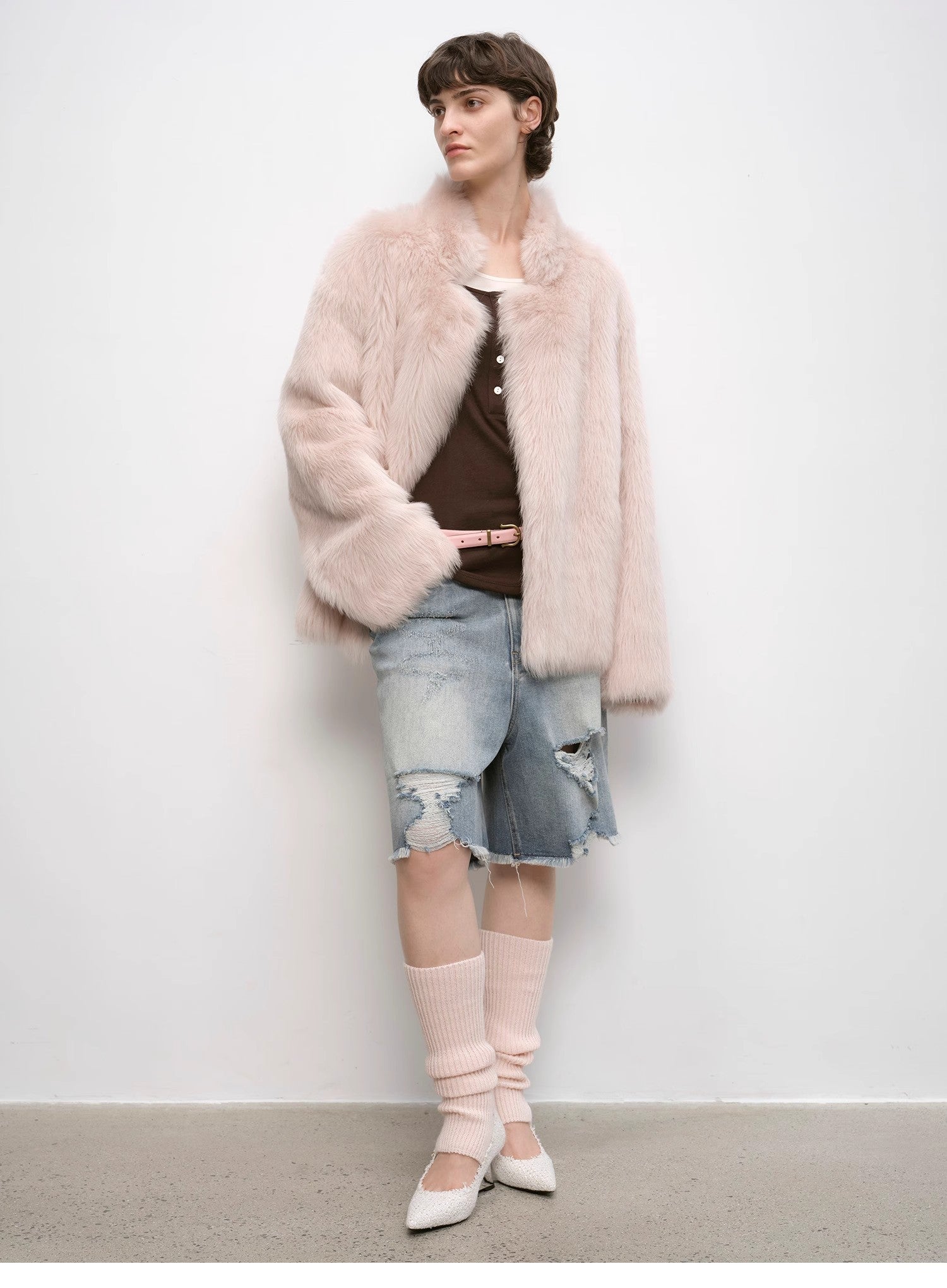 Fashion-forward minimalist design and silhouettes create timeless capsule wardrobe classics. Crafted from selected original ecological Toscana fur leather in Italy, the delicate, smooth straight fur surface offers warmth without bulk. The double-layer wool stand collar is thick and warm, fearless of severe cold and frost, rejuvenating autumn and winter stylish looks.