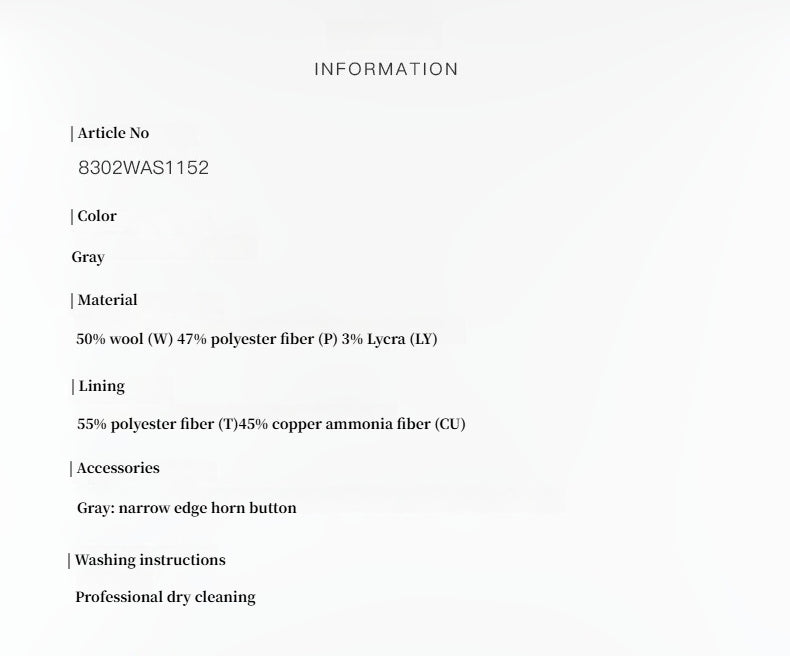 - Imported Australian Wool Blend – Crafted from superfine 19.5-micron Merino wool in a heavyweight fine twill worsted weave.