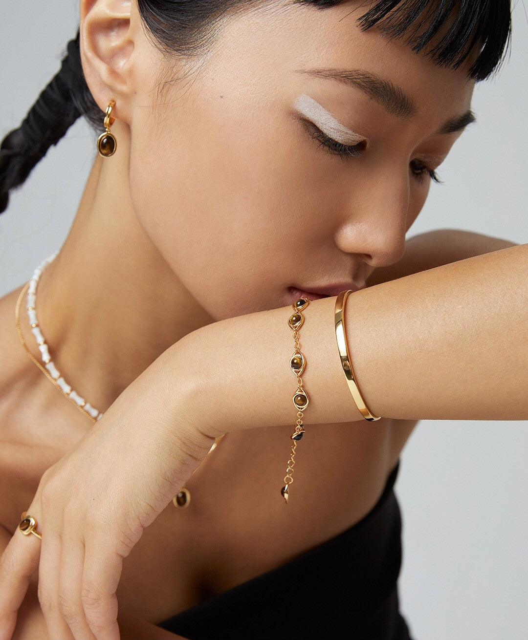 - Materials: Lapis lazuli / Tigers Eye Stone / Gold Vermeil (18ct gold plated on sterling silver)