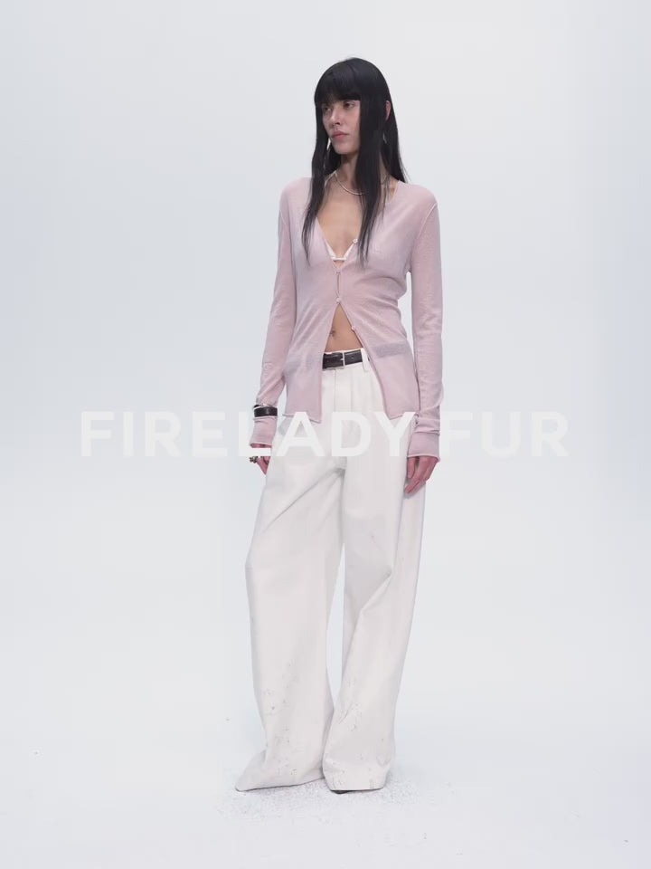 "Long Island Vacation" Wool Blend V-Neck Straight Shoulder Knitted Cardigan Spring