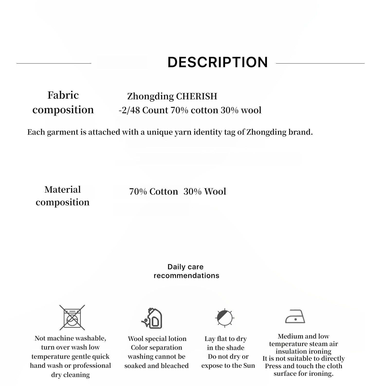 Expertly knitted from a premium 2/48 count wool-cotton blended yarn, this piece combines the breathable, dry-hand feel of cotton with the warm, soft touch of fine wool. The result is a naturally textured knit that’s: