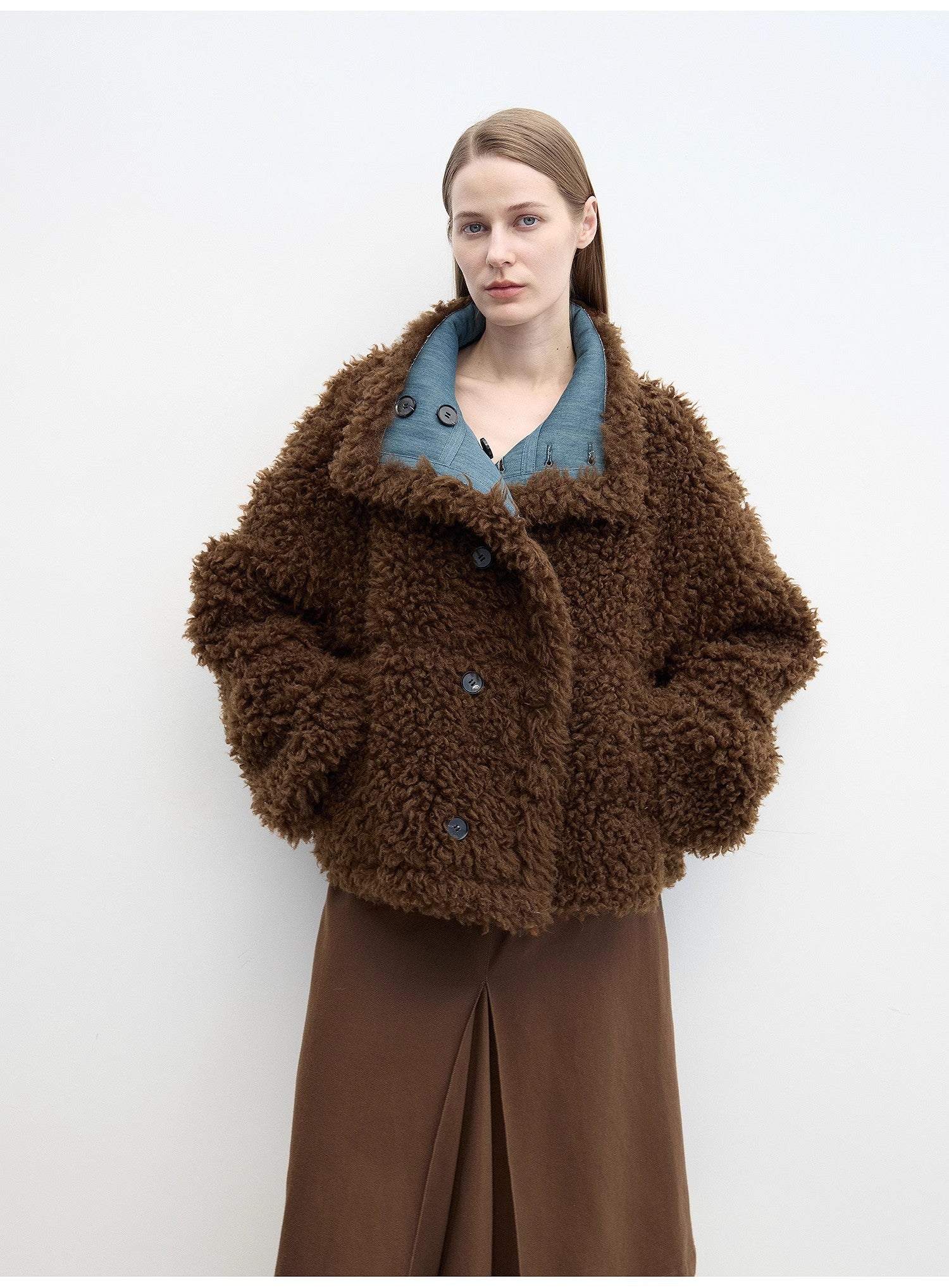 The wool surface is dense and thick, soft and soft. Wool feeling full and mellow, presenting an even and delicate fluffy texture semi-curly style, each wool is plump and full, curly with degree, comes with a lazy casual temperament comes with a curly degree of wool even and dense, both fashionable and warmth function!