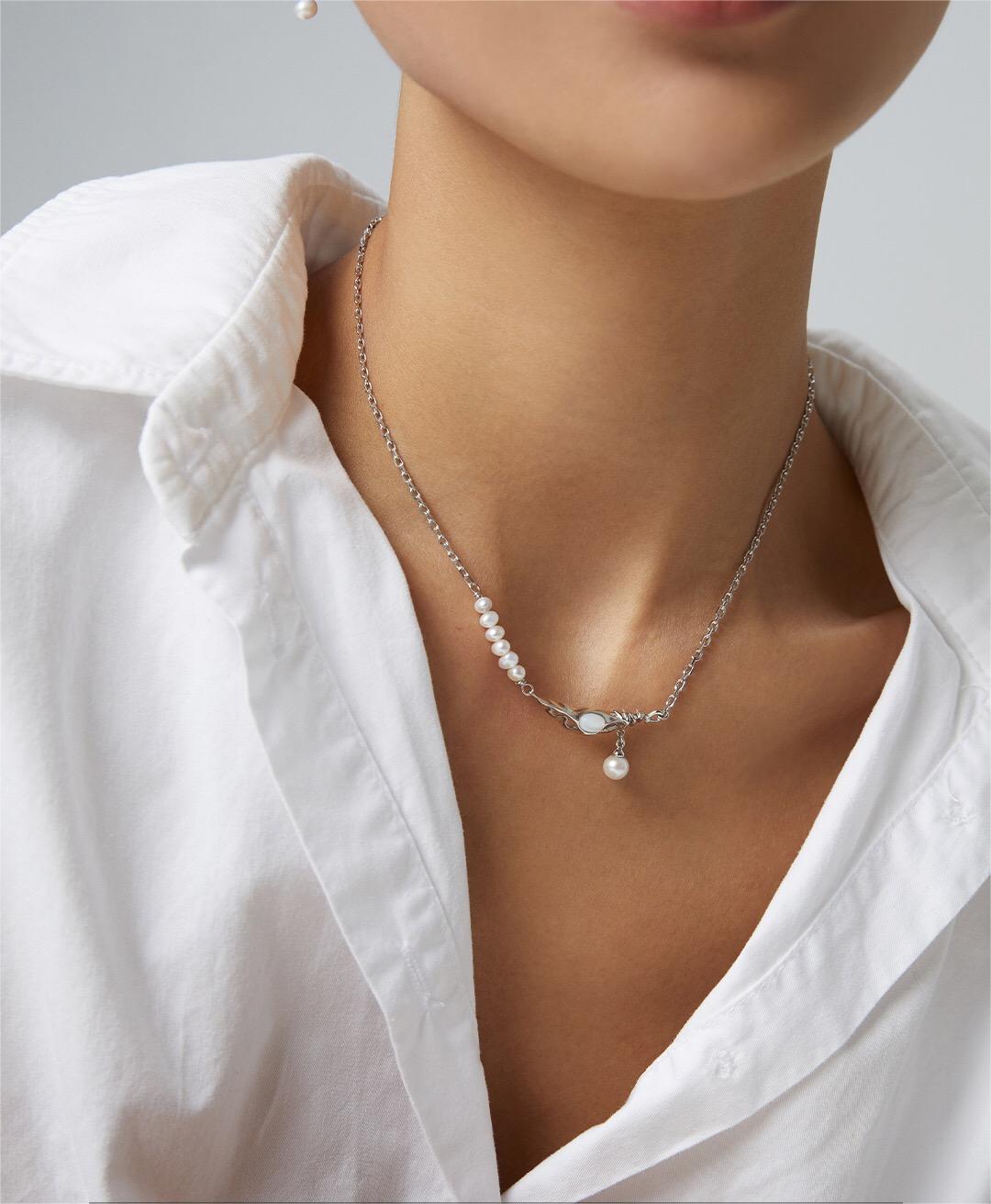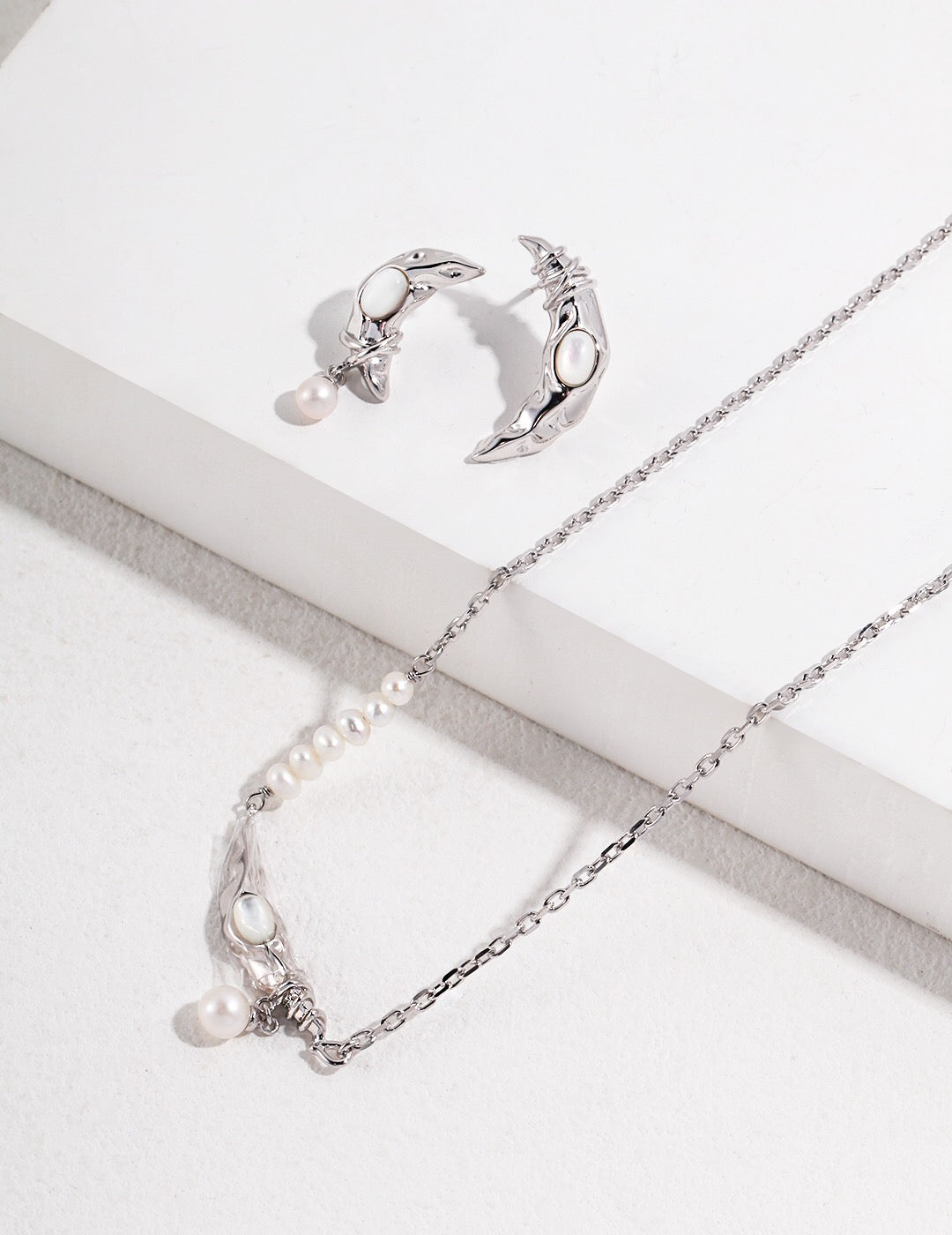 Moon Element Lapis Lazuli / Opal Dangle Pearl Necklace