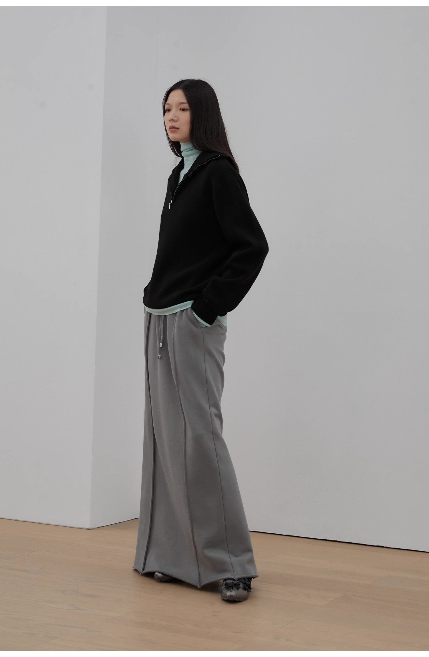 Made with new Australian 2/26 high-fineness pure wool yarn, this oversized, straight-cut sweater offers a relaxed, roomy fit that comfortably accommodates different body types. It provides a warm, flattering silhouette that gently hides imperfections and offers endless layering possibilities. The classic polo collar features a double-ended zipper, allowing you to wear it both folded or standing up. Crafted from 100% fine Merino wool, it’s soft, delicate, and comfortable against the skin.