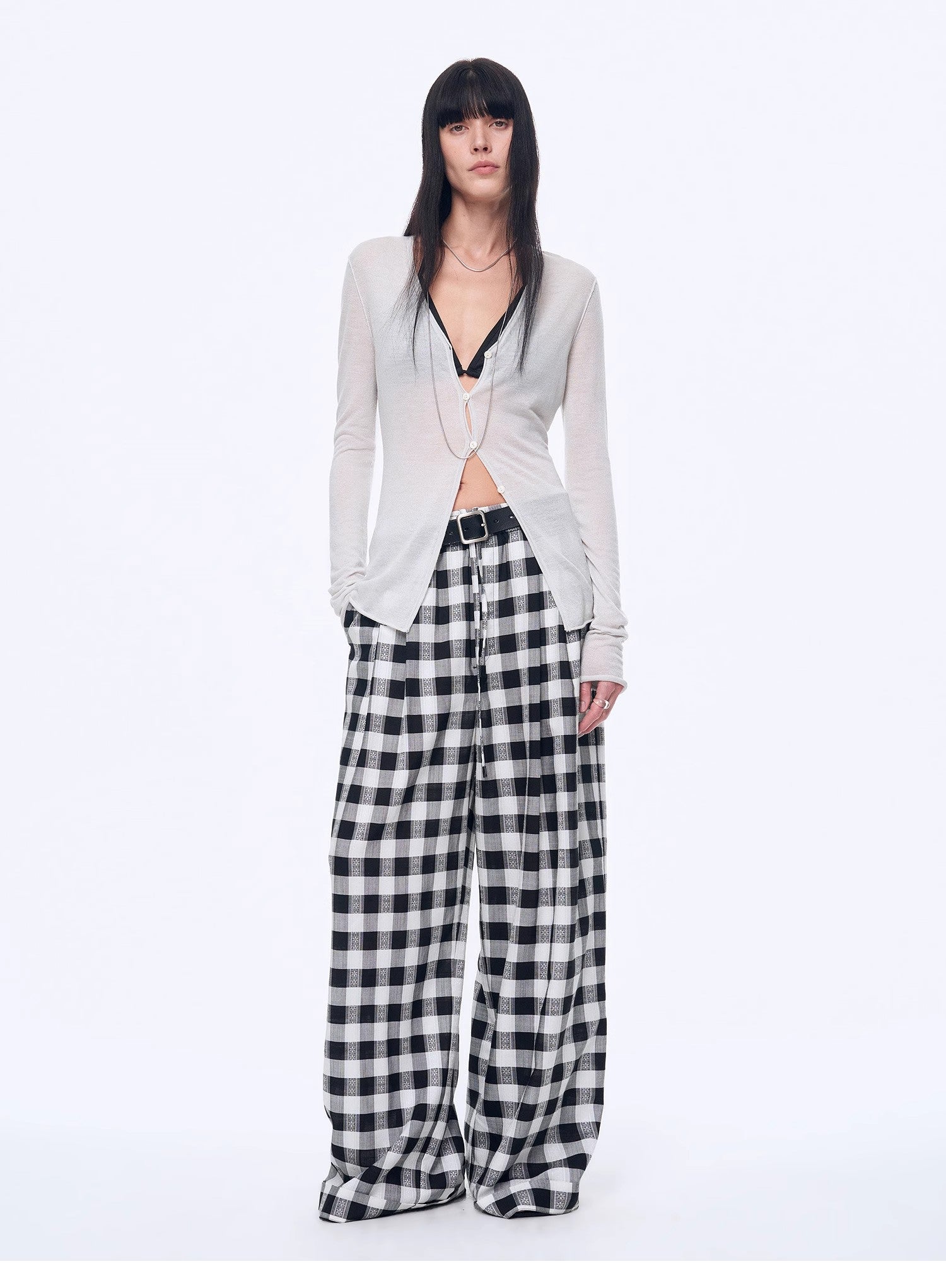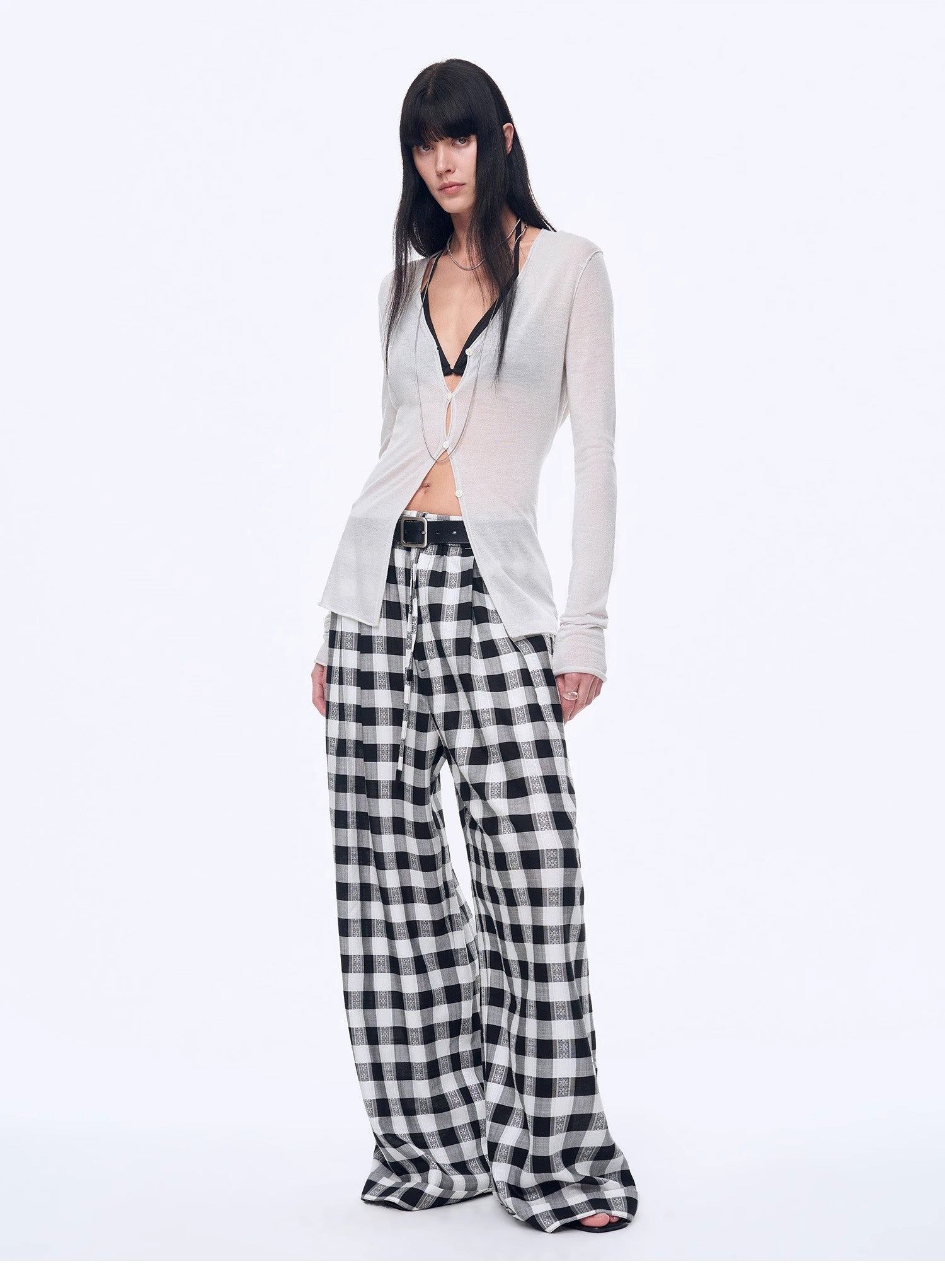 Made from natural linen fibers, retaining the natural texture of linen, dry and not stuffy, with excellent drape, agile and elegant. Incorporating retro checkered yarn-dyed fabrics and low-saturation brown-yellow tones, it cools the visual sense, making it hazy, slightly transparent, elegant and agile.