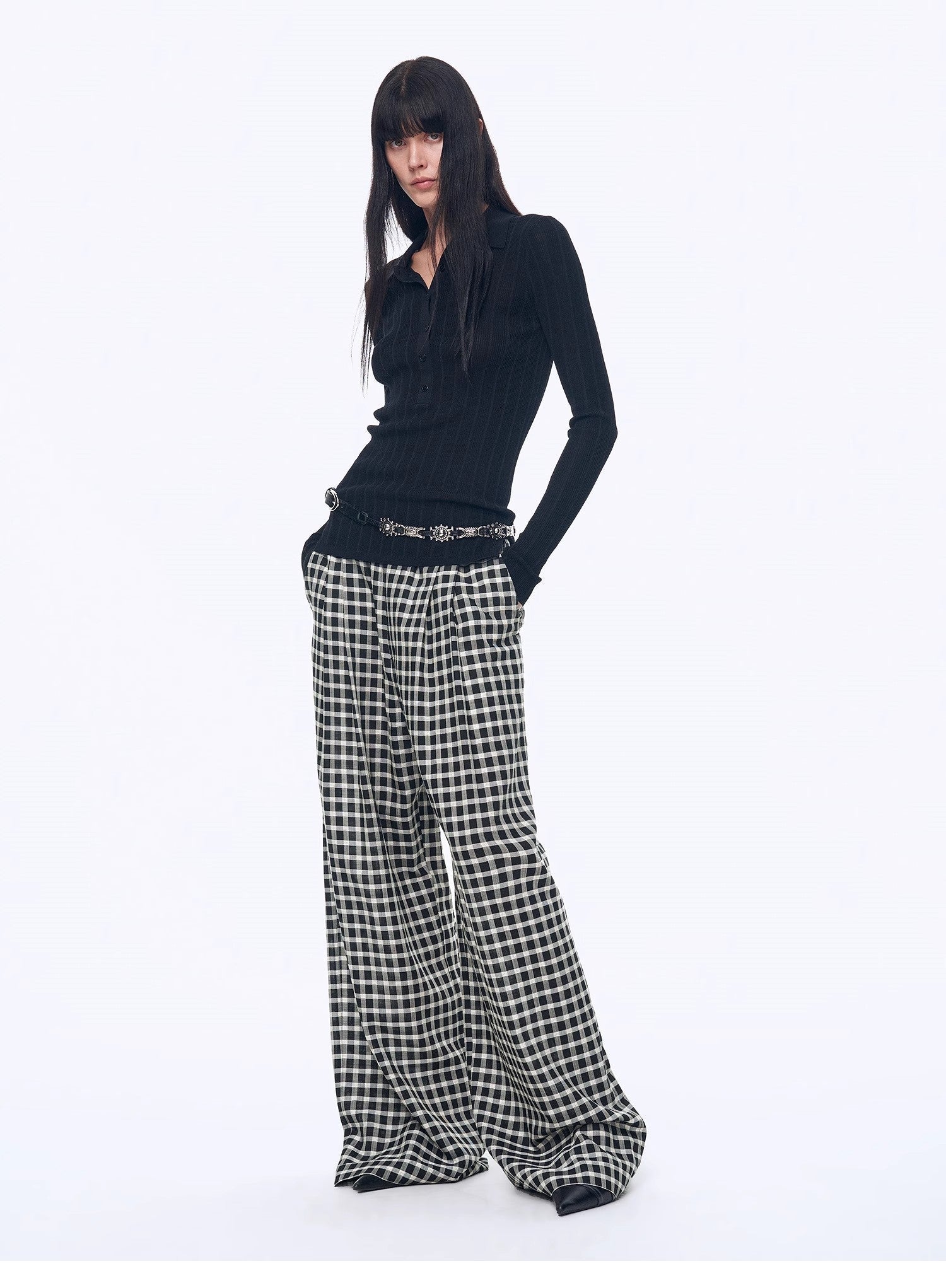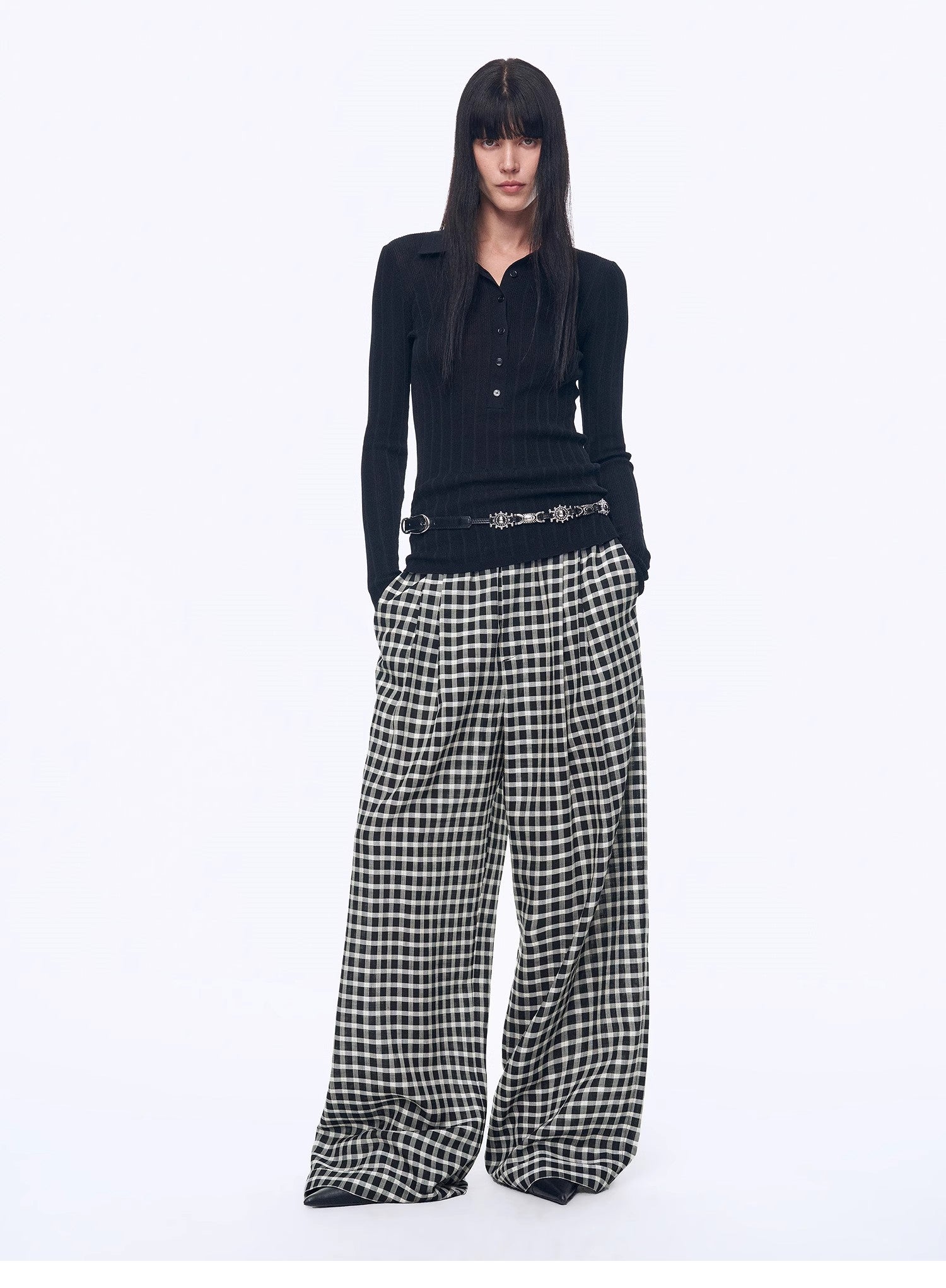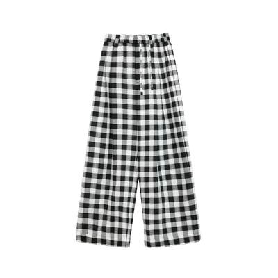 "Plaid Accent" National Style Tencel Acetate Jacquard/Drape Linen Plaid Retro Casual Pants Spring