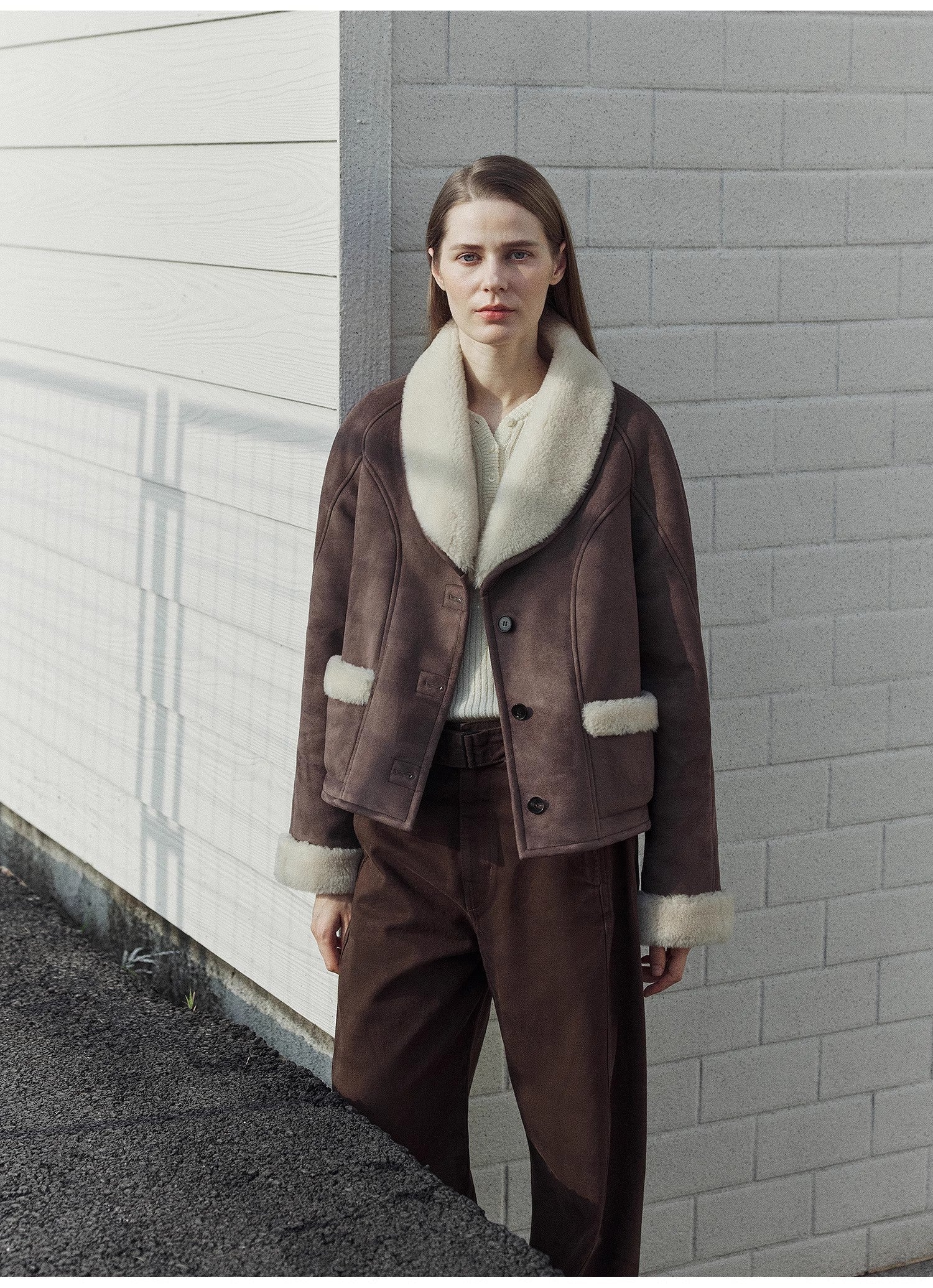 Contrast color straight wool shearling lining