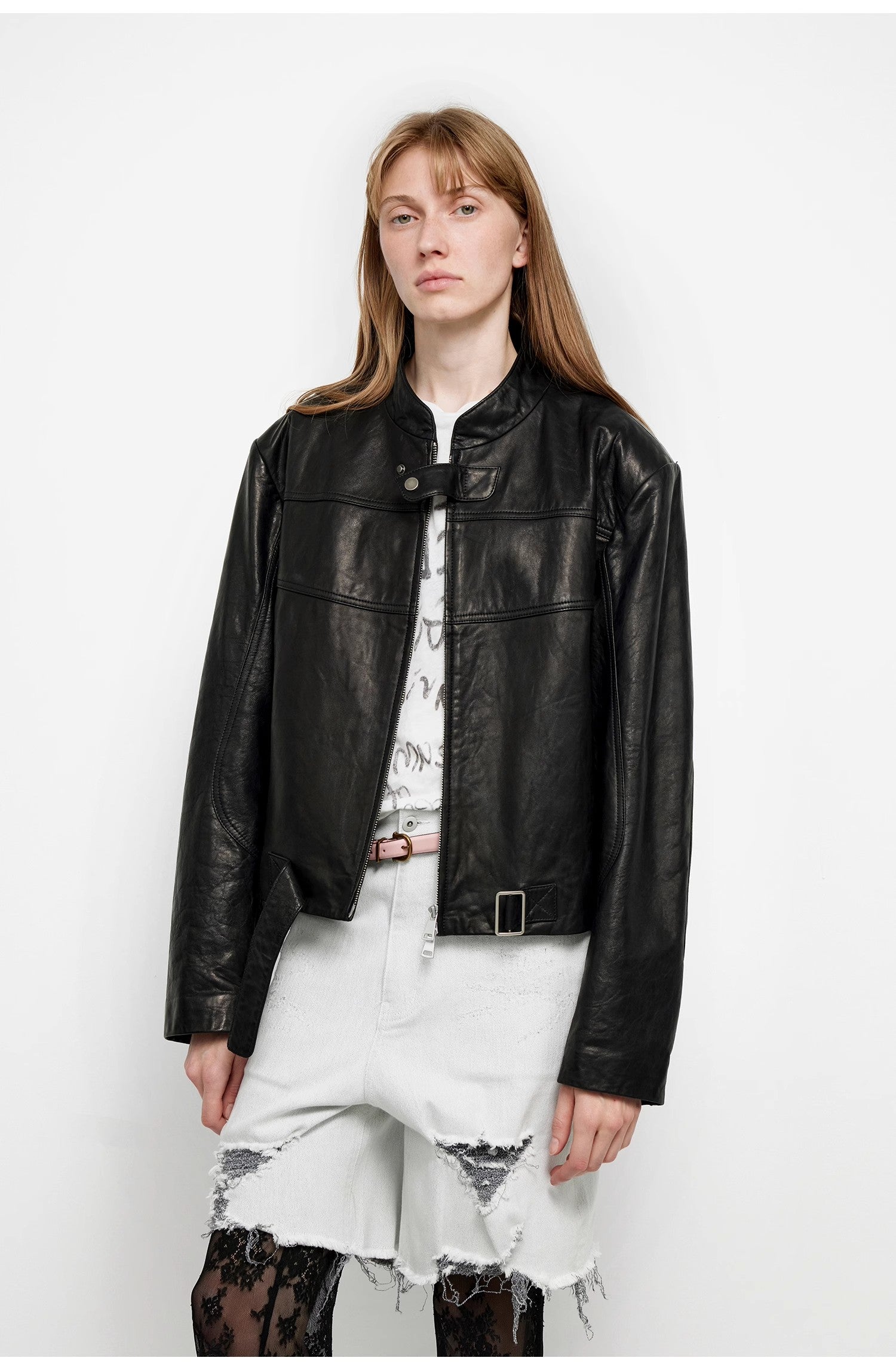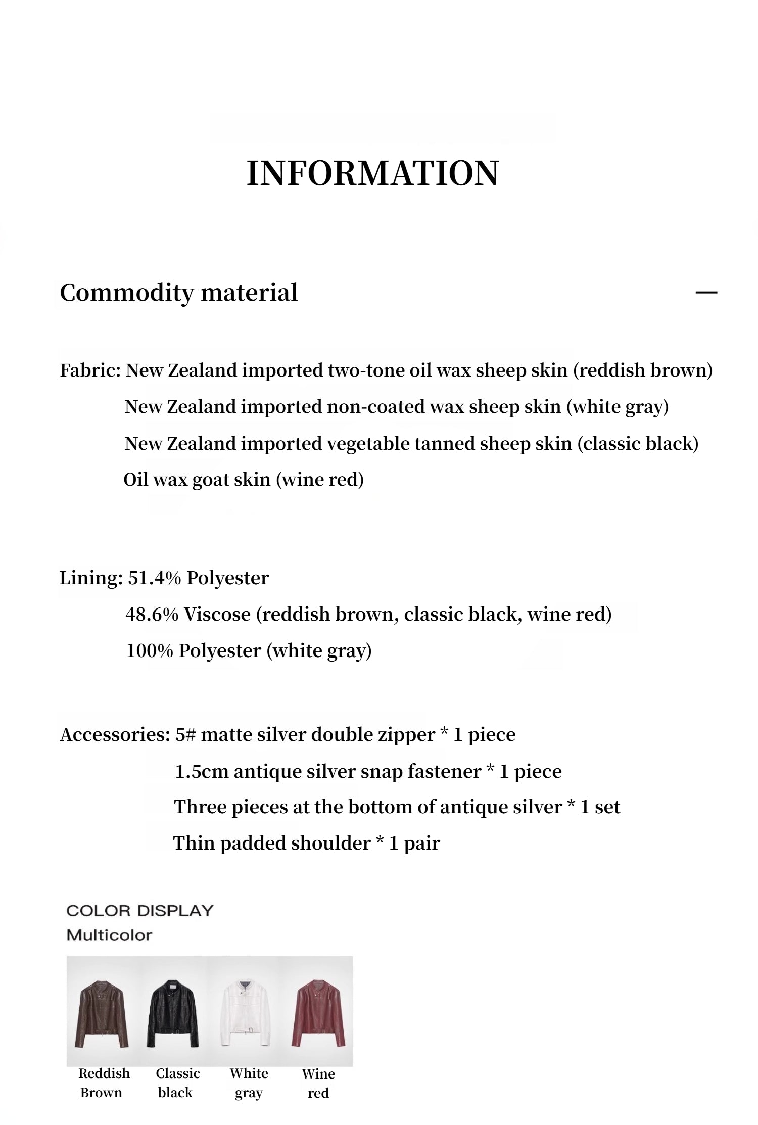 Turn heads with a piece that blends bold attitude and timeless luxury. This classic stand-up collar biker jacket is crafted from premium oil-waxed sheepskin imported from New Zealand, delivering a rich, fashion-forward look with unmistakable vintage character. The warm brown-red tone elevates the retro aesthetic while offering versatile styling—effortlessly channel the look of a style influencer without overthinking your outfit.