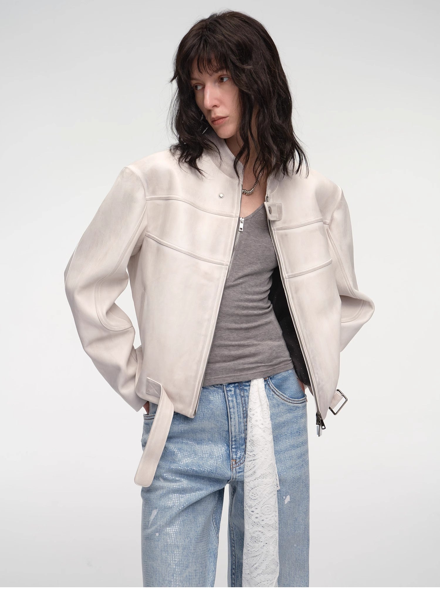 New Zealand Oil-Waxed Sheepskin Biker Jacket