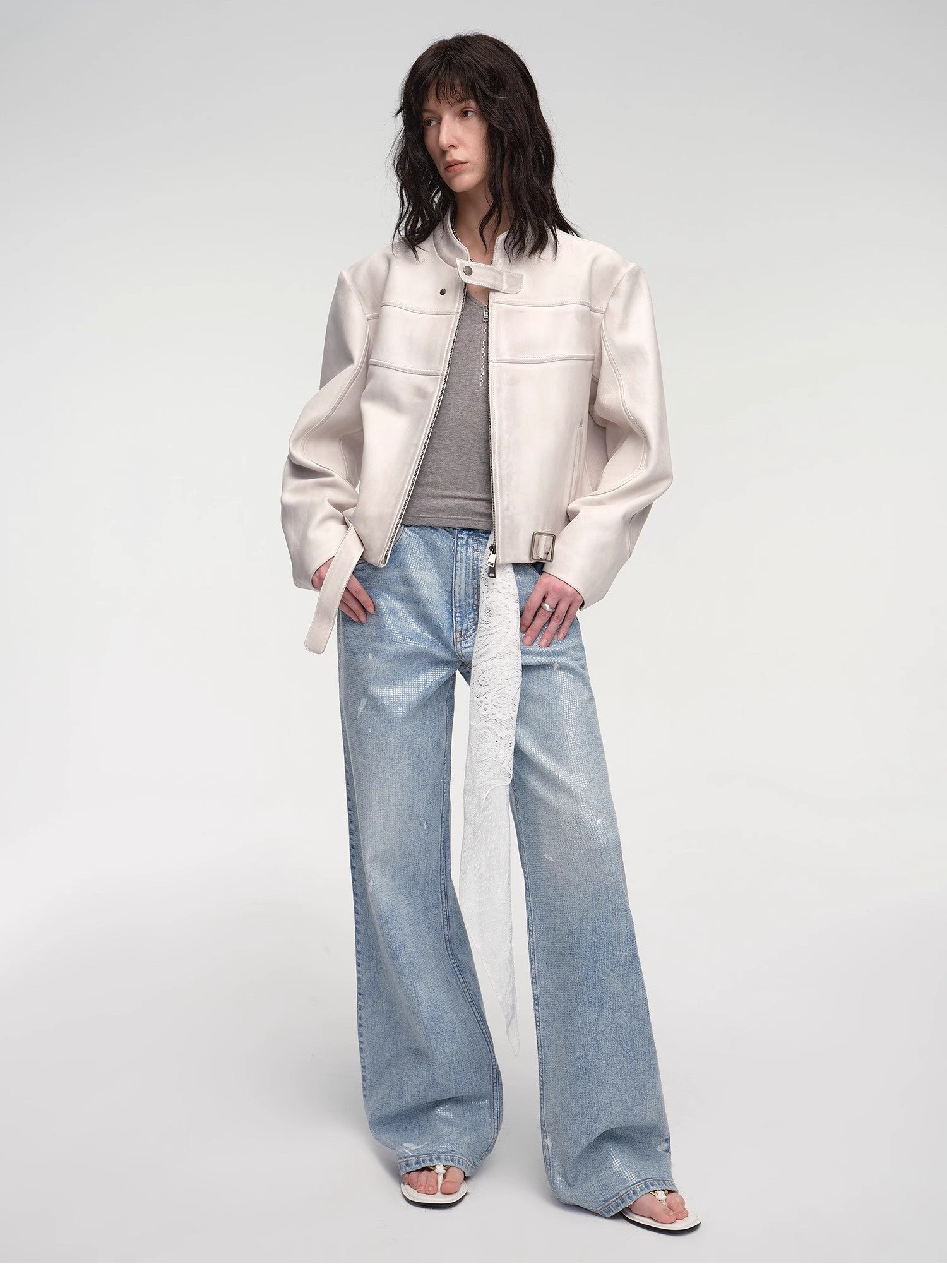 Sourced from New Zealand, this custom-developed sheepskin features a unique oil-wax finish that evolves with wear, showcasing a dynamic play of light and dark hues. The natural grain and ribbed texture are preserved, delivering a soft yet sinewy touch with a refined, waxy sheen. Only Grade-A hides are selected for this jacket—each piece is handpicked to ensure consistency and quality before undergoing a meticulous “wax-like” coating process. The result: a supple, high-gloss surface with just the right balance of structure and flexibility, exuding vintage flair and contemporary polish.