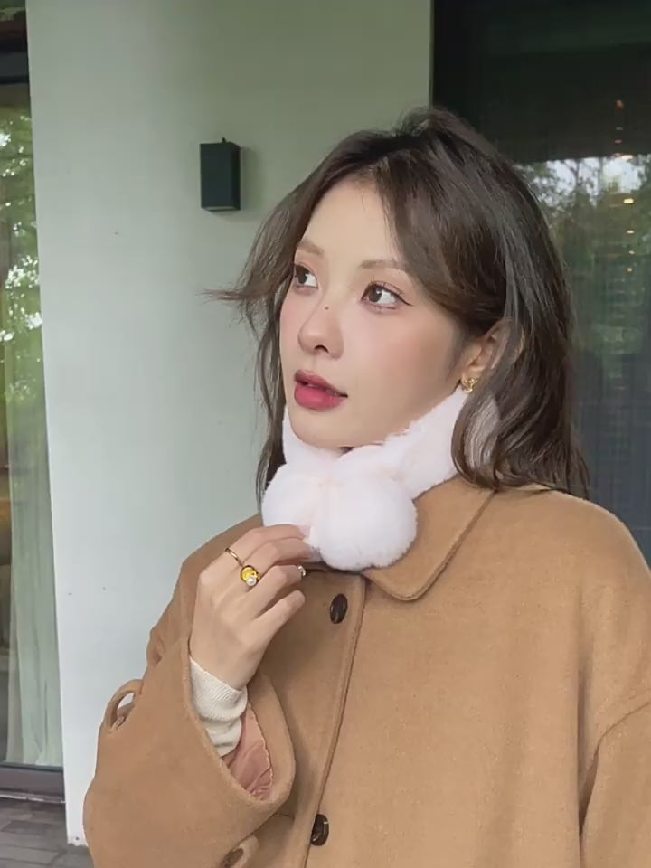 Crafted from genuine Rex rabbit fur, this piece offers a soft, velvety texture that is smooth to the touch and resistant to shedding. Adorned with charming fur pom-poms, it carries a sweet and playful elegance while maintaining a refined feel.