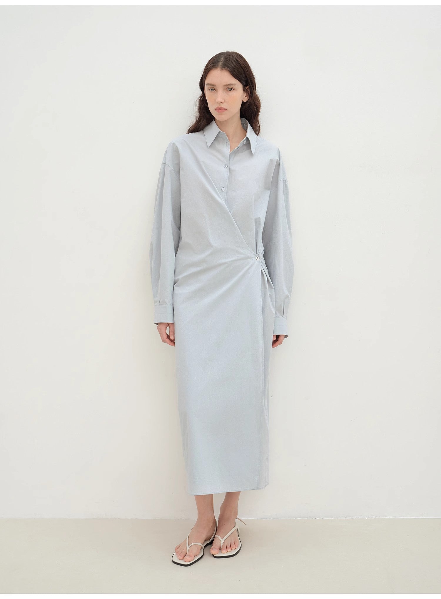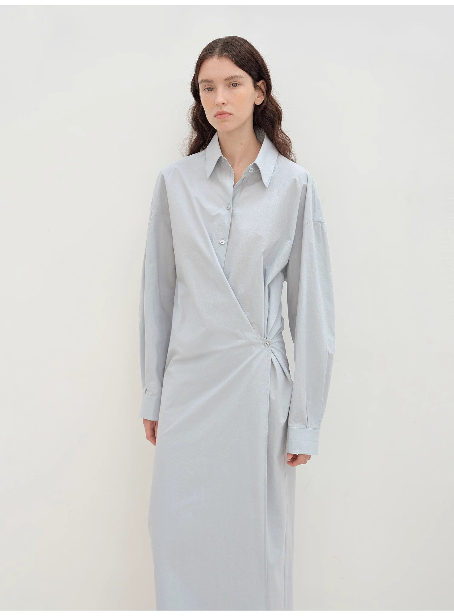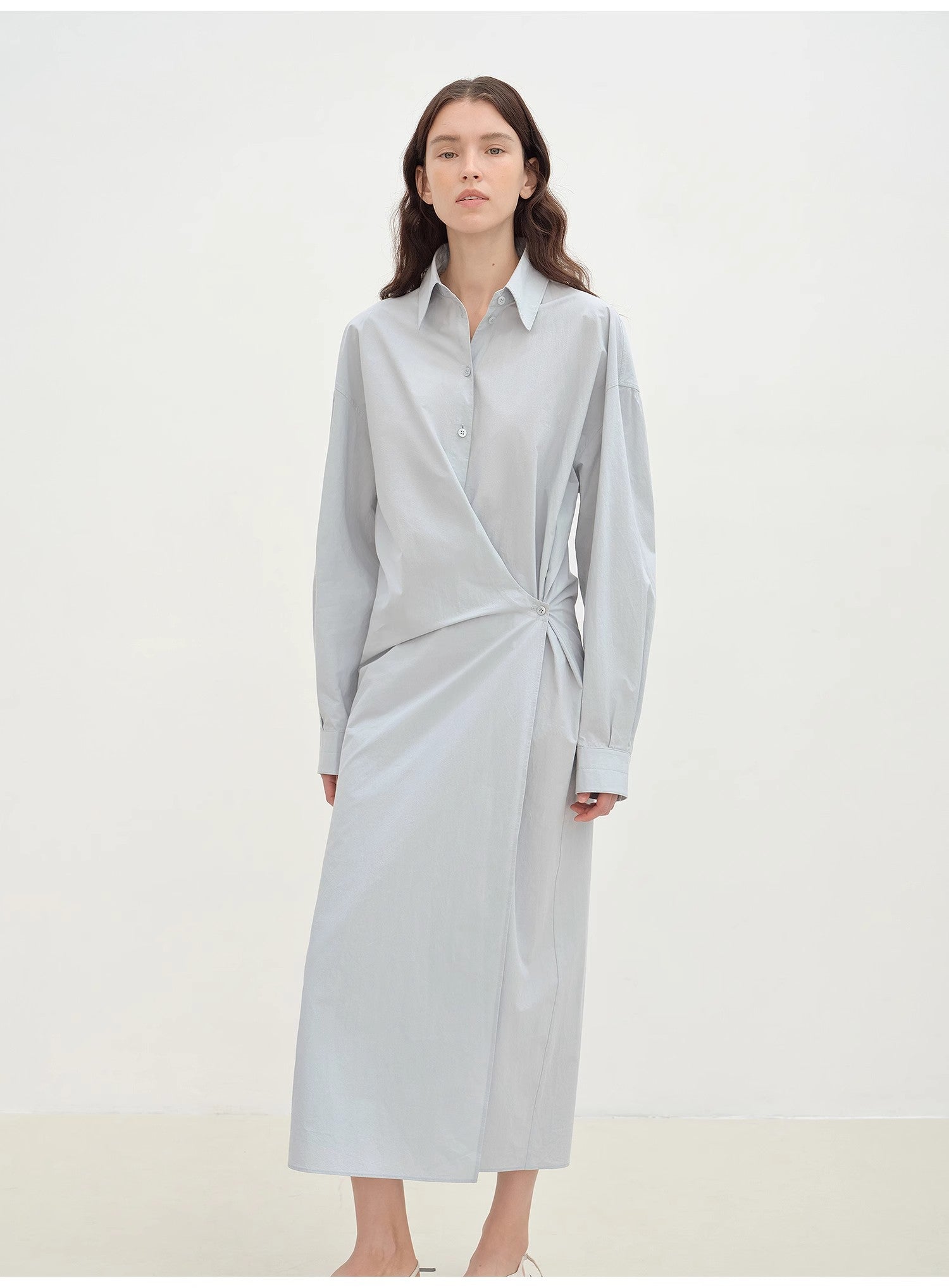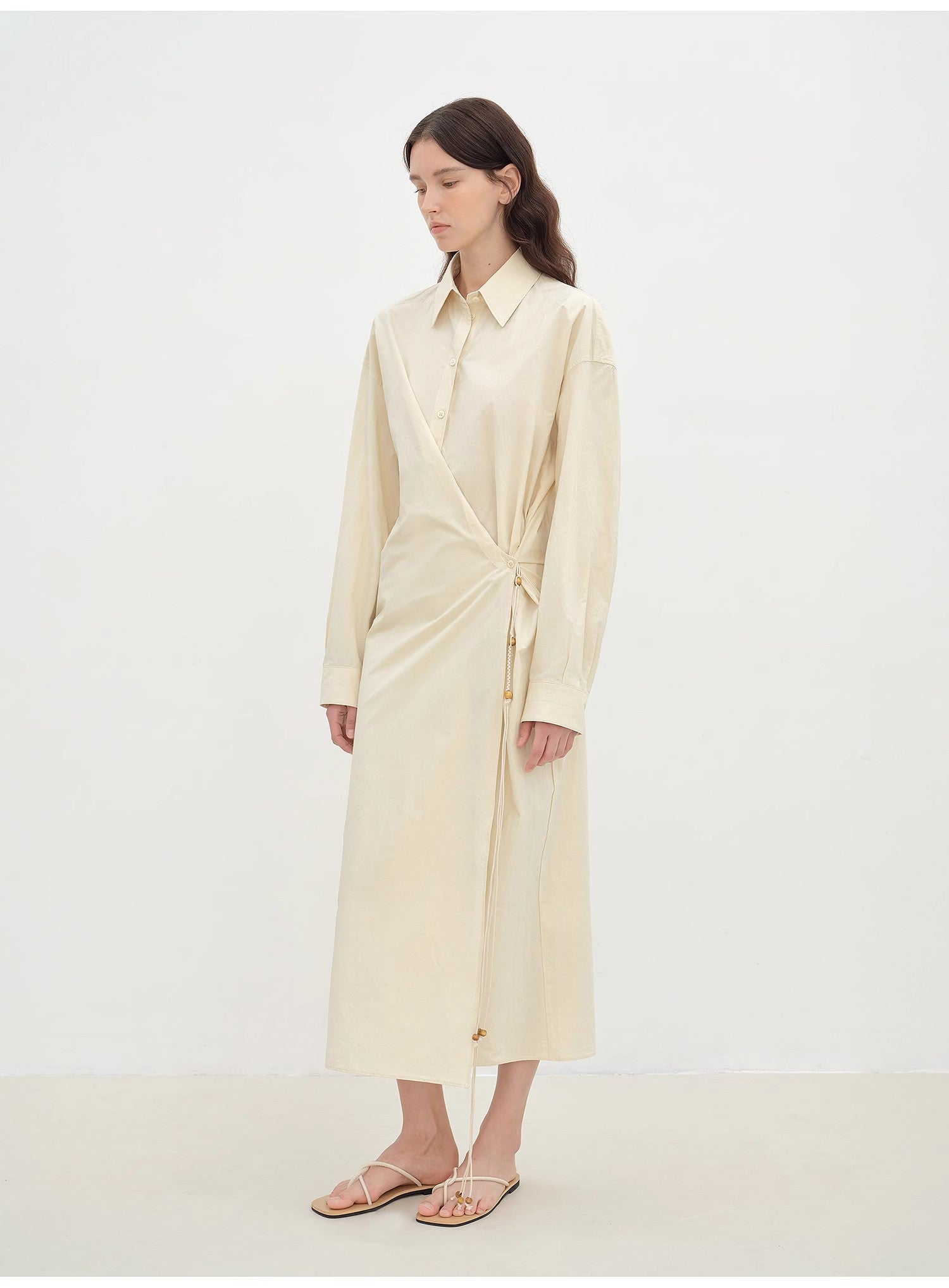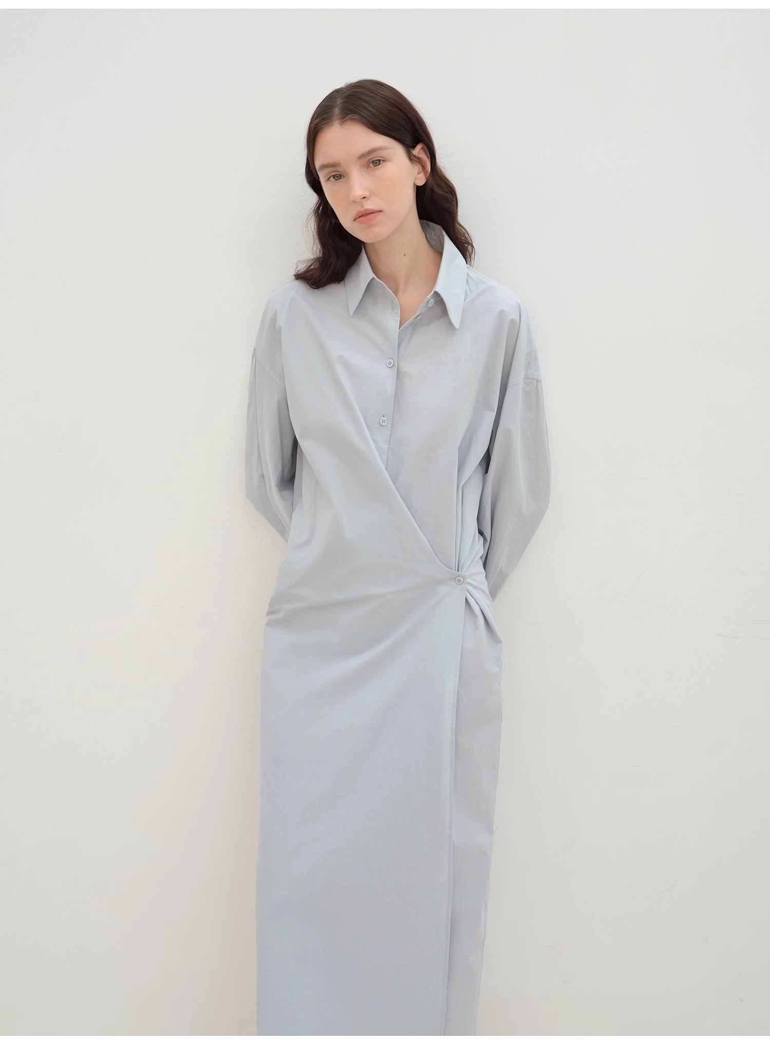"Romantic Vibes" Cross-Placket Loose Long-Staple Cotton Shirt Dress