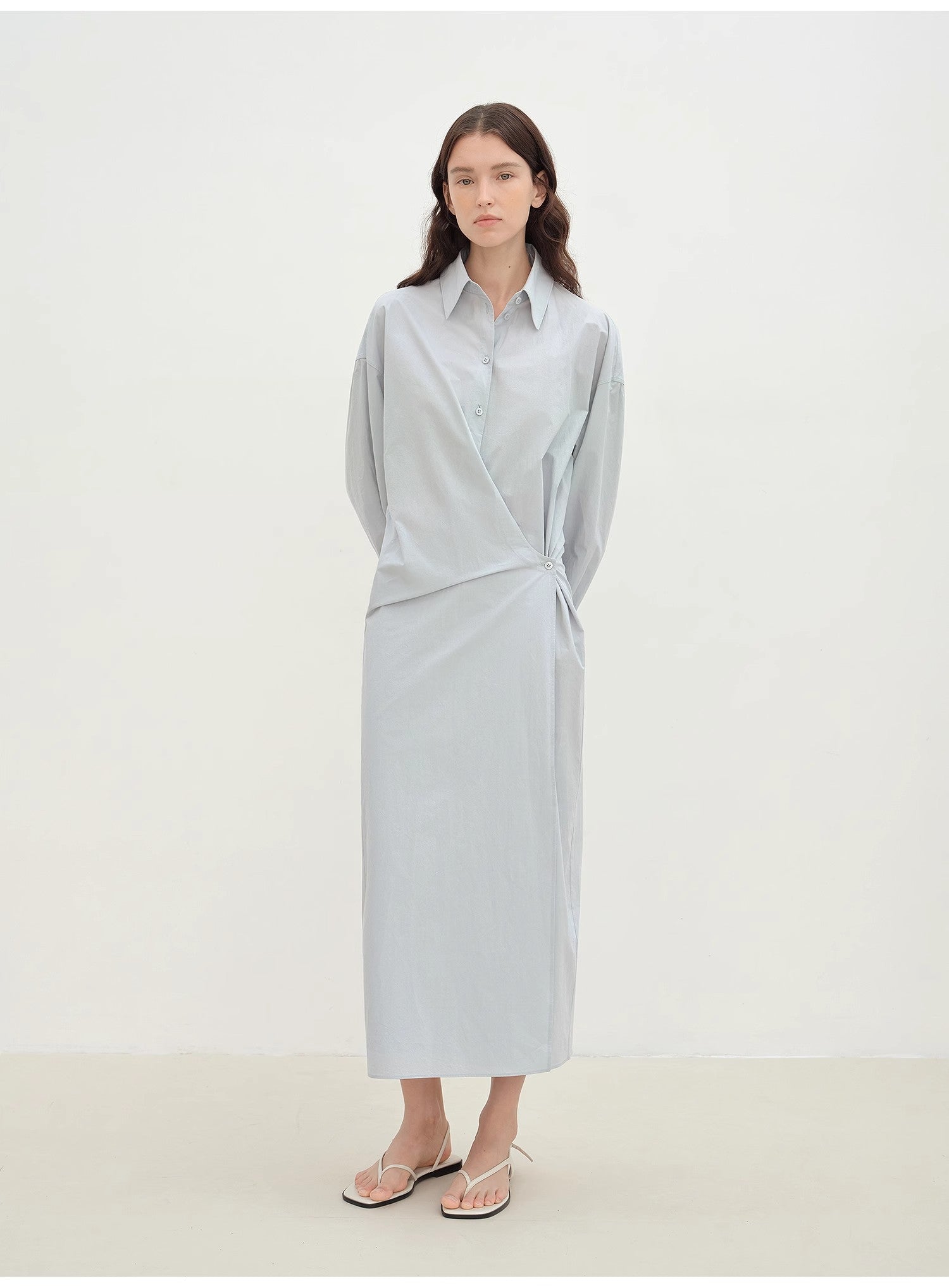 "Romantic Vibes" Cross-Placket Loose Long-Staple Cotton Shirt Dress