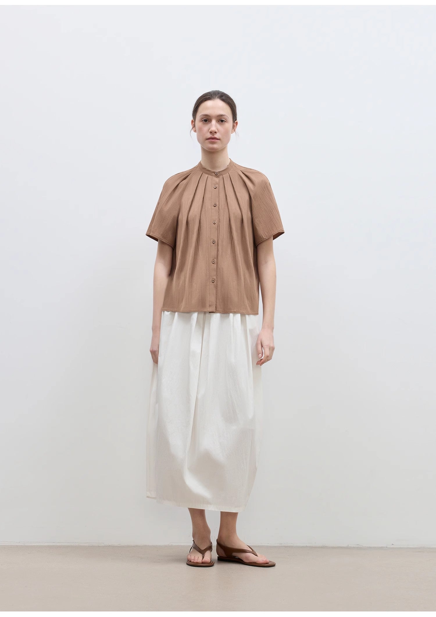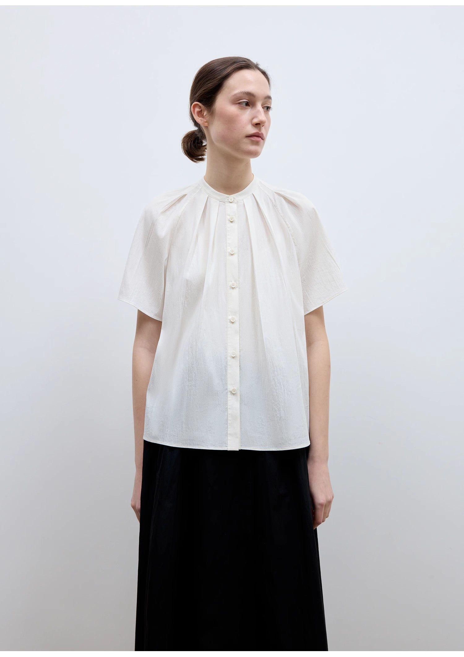"Silent Island" Stand-Up Collar Pleated Short-Sleeved Shirt Women's Casual Top