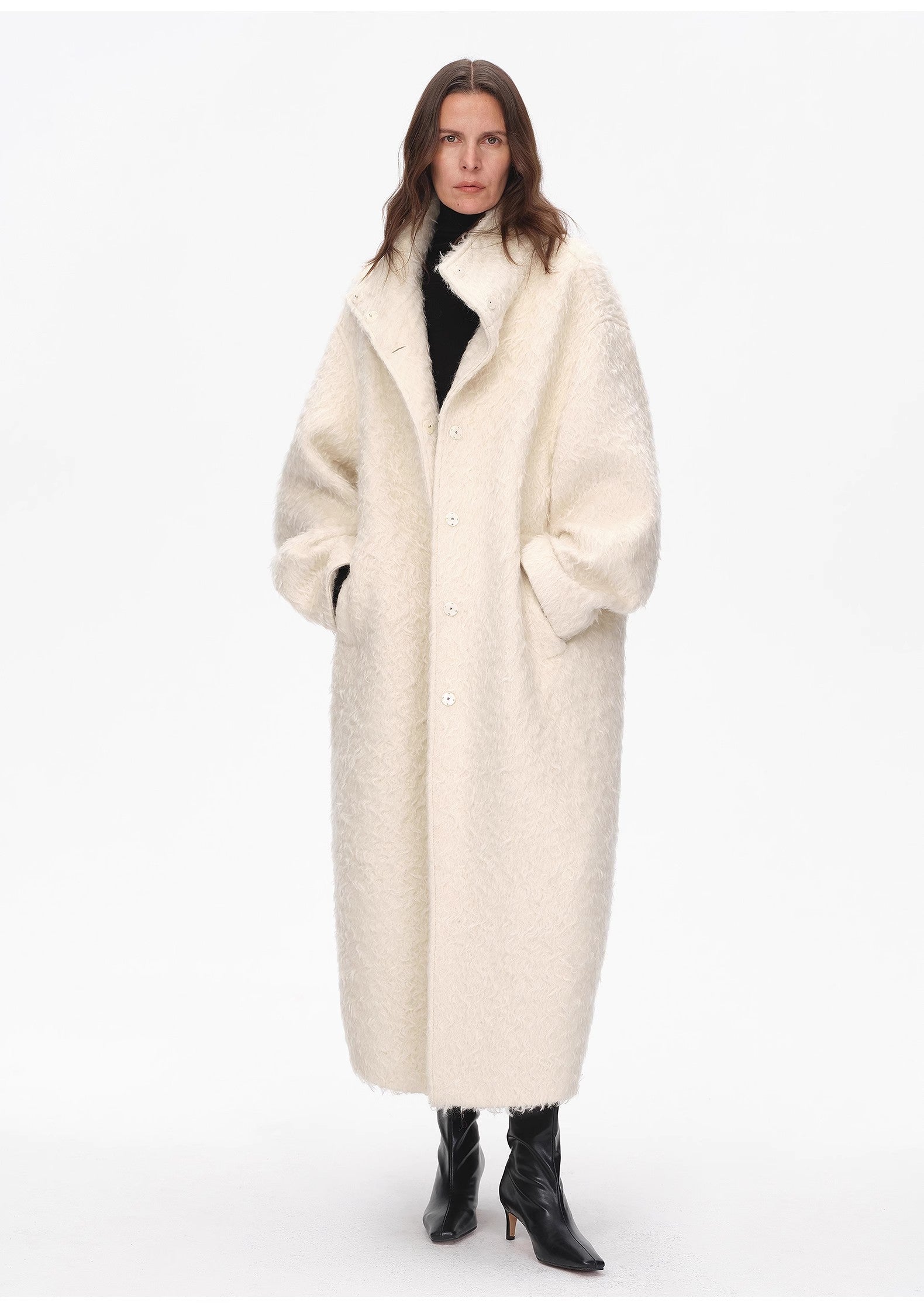 "Song of Snowland"Women's Mohair Wool Stand Collar Coat Autumn and Winter Loose Woolen Coat
