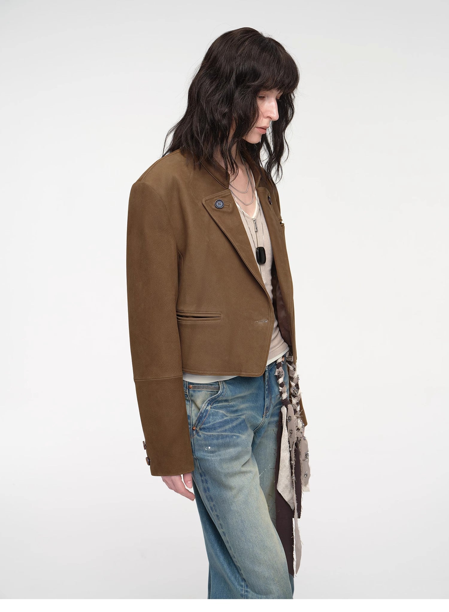 Stand Collar Suit Sheepskin Leather Short Jacket "Roman Story"