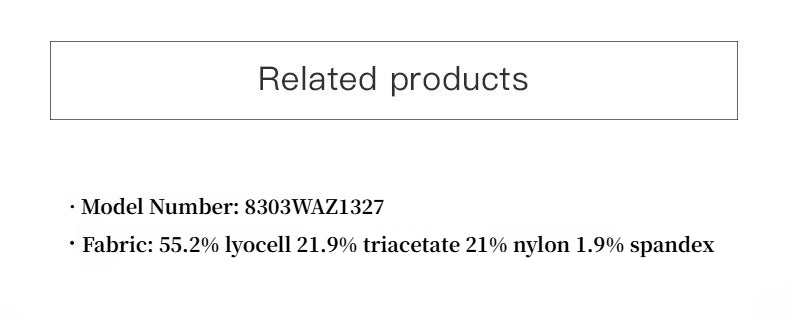 Imported Japanese triacetate fiber blended with tencel, ultra-fine and thin spring-summer yarn High-density weaving creates a regular plain texture with plump, smooth surface and soft luster. Tencel's flexibility gives excellent drape while maintaining structure, keeping the garment shaped and non-saggy.