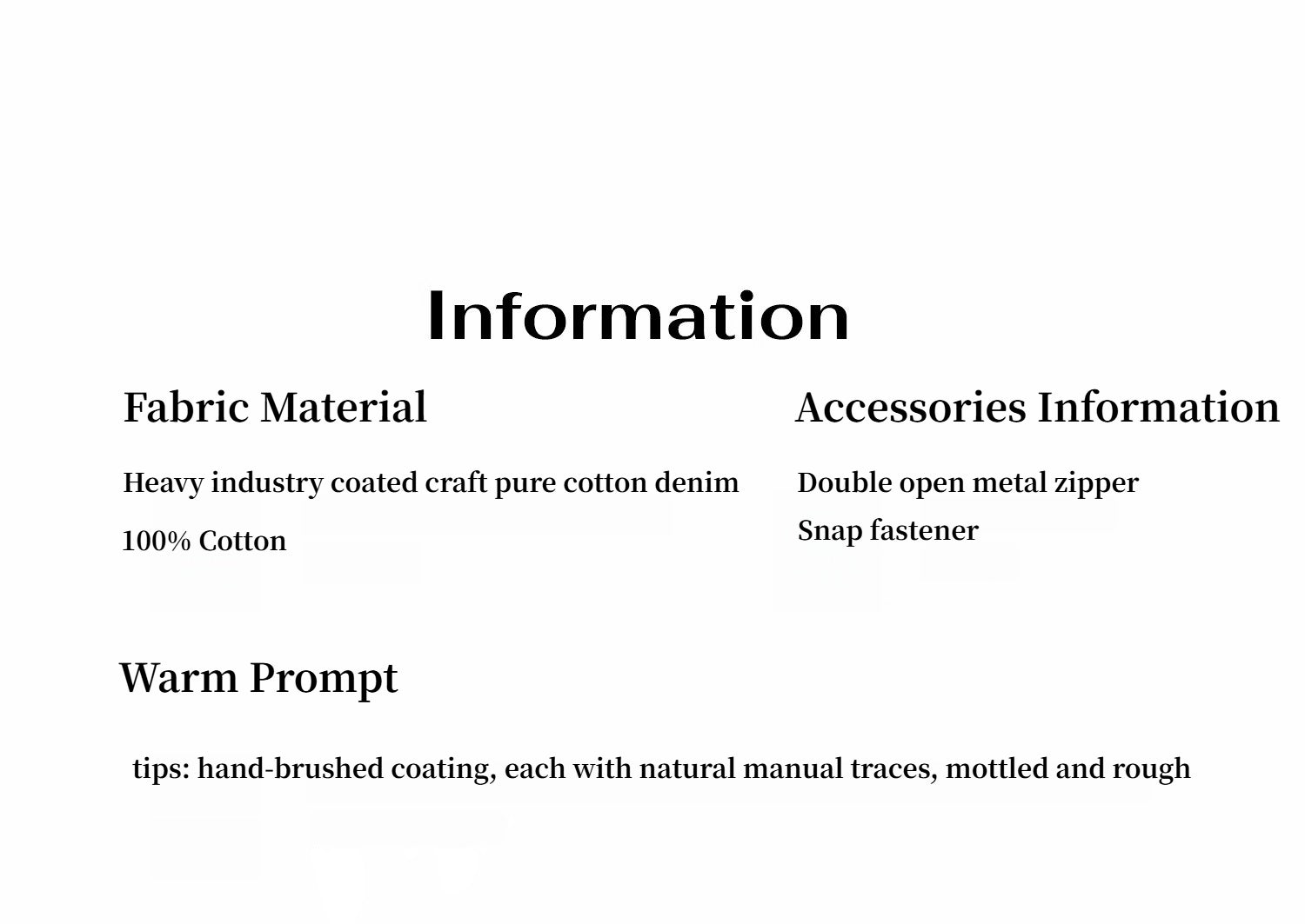 Special bamboo yarn is selected to create a rough and retro visual with more texture than ordinary denim. The denim is elastic and has good shape retention. It is strong and wide, not easy to deform or bulge, durable and easy to care for.