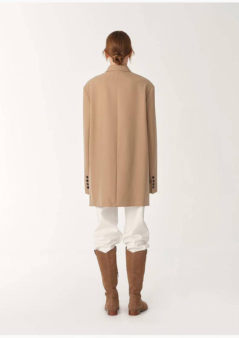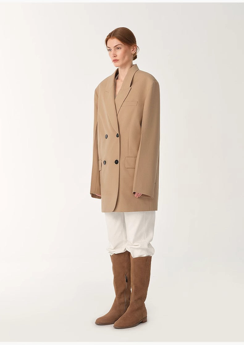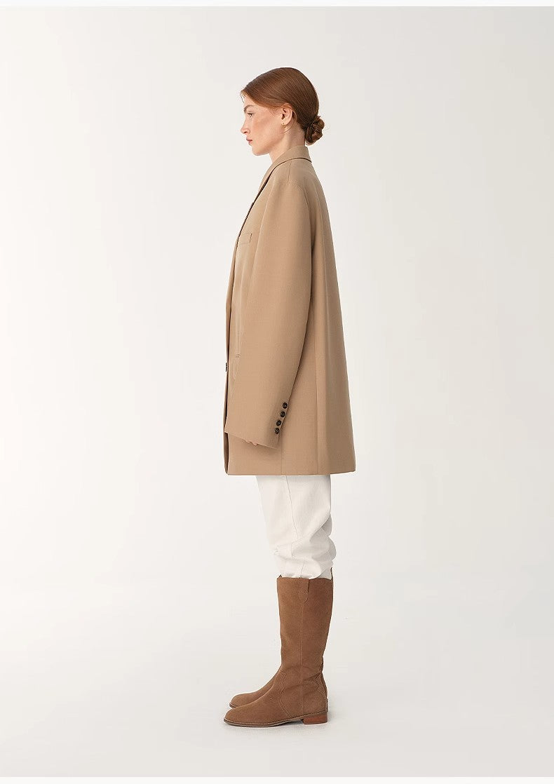 Women's High-Density Fine Silk Wool Peaked Lapel Suit Jacket